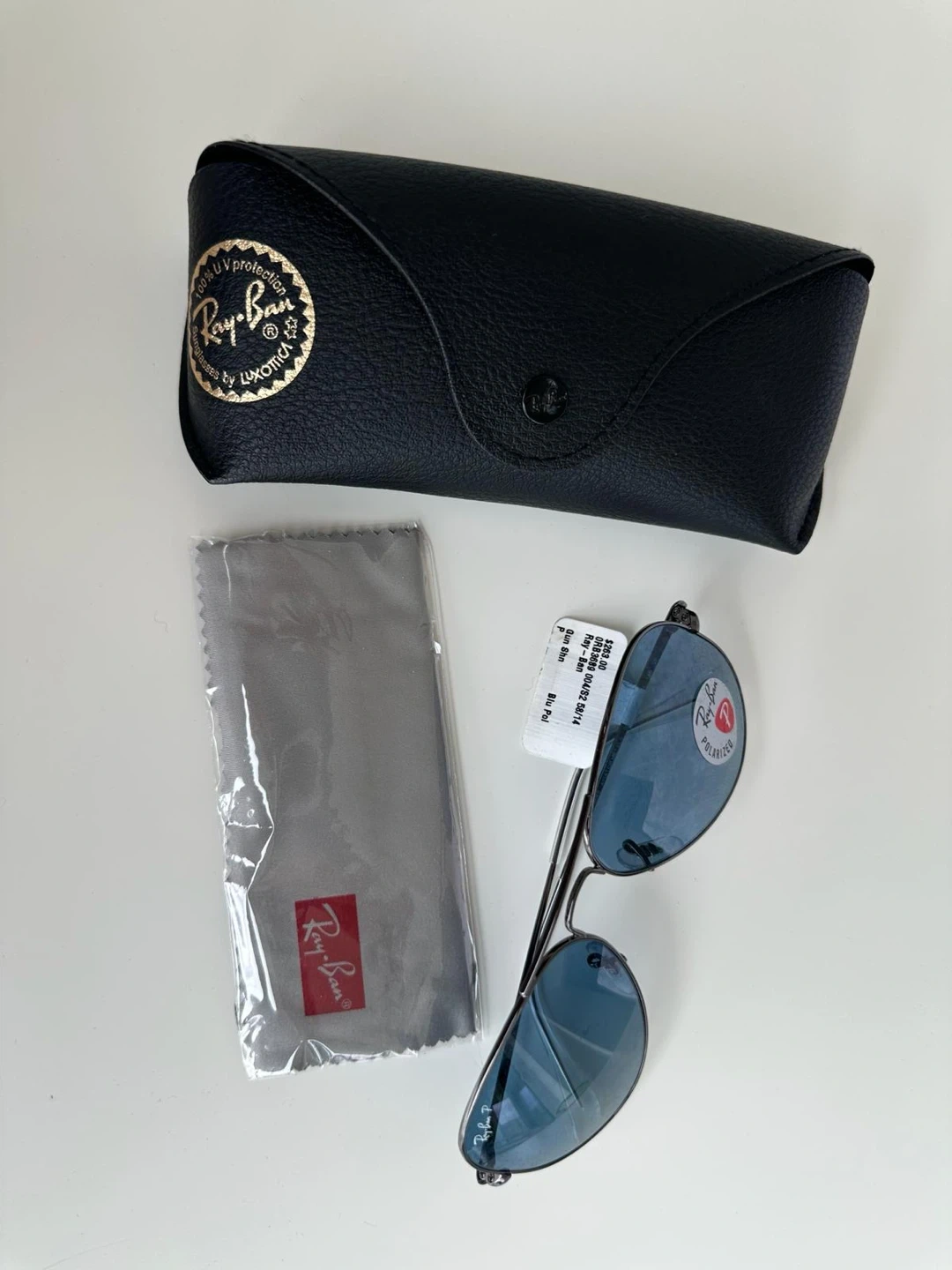 Selling a pair of Ray-Ban aviator sunglasses! They come with a case and cleaning cloth to keep them in great shape. These classic shades are perfect for sunny days and add a cool touch to any outfit. The aviator style is timeless and always in fashion!