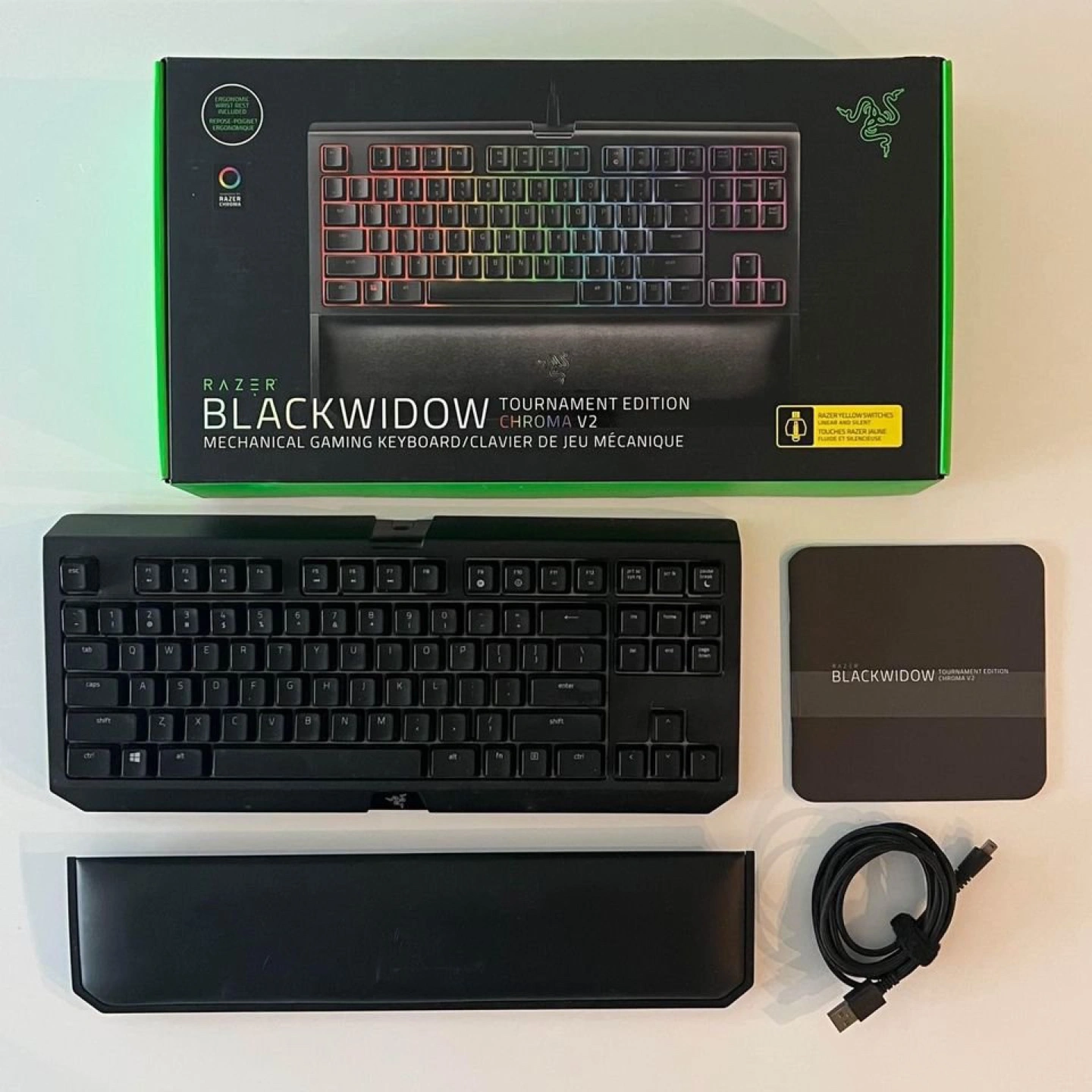 Razer Blackwidow Chroma V2 Mechanical Gaming Keyboard Yellow Key Switches + Gigantus v2 Cloth Gaming Mouse Pad (size Medium) #razer #gamer #keyboard #mousepad #blackwidow #mechanicalkeyboard #tech