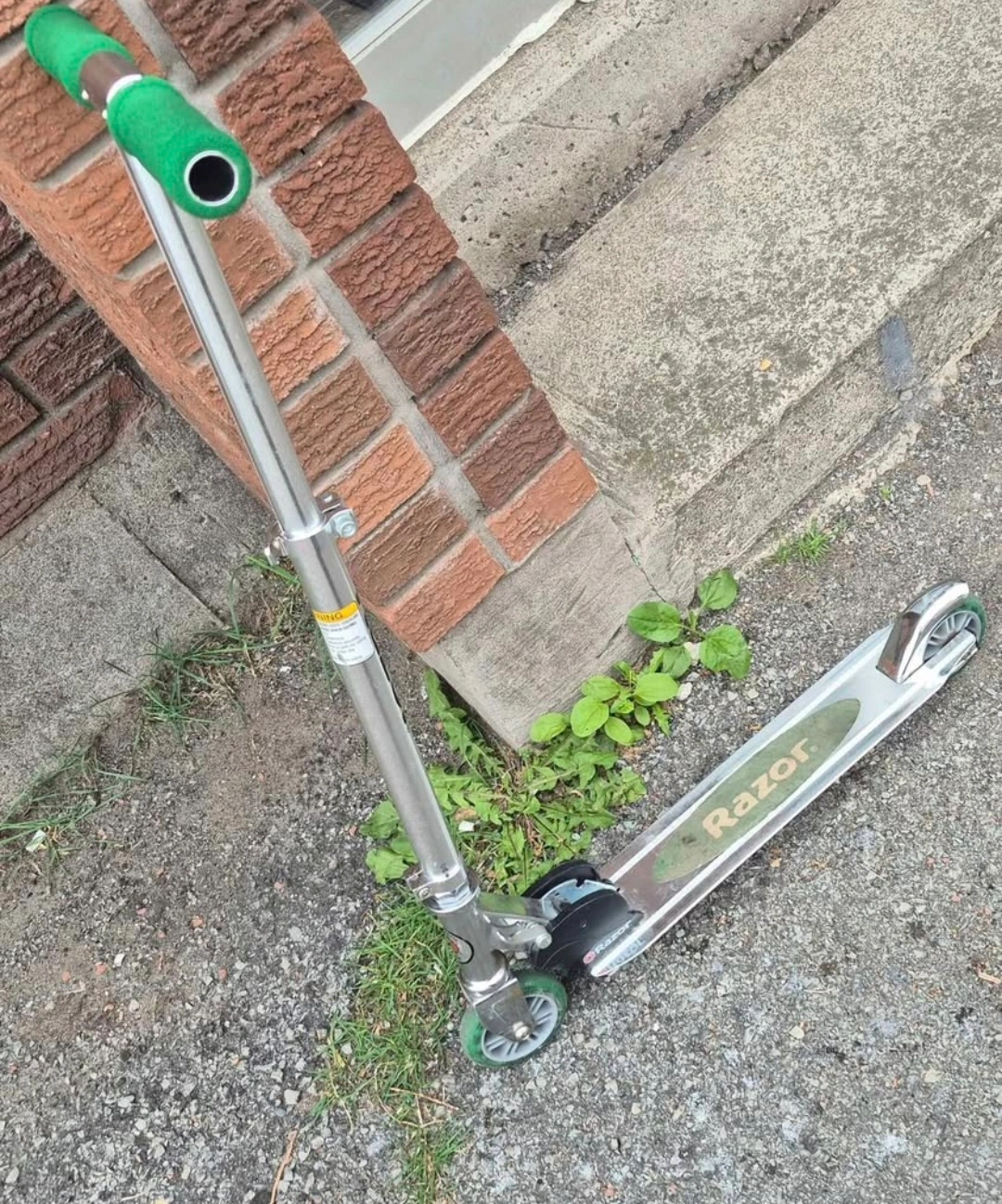 Selling a Razor scooter in good condition. It has green handle grips and the Razor logo on the deck. Great for getting around!