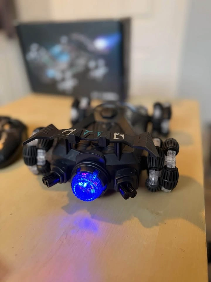 Pretty much new barely used, comes with 2 types of control, the standard remote and a wrist control to mirror you hands movement. Cool concept as well as have a fog button to leave smoke behind. Will need to fill small tank with water first.