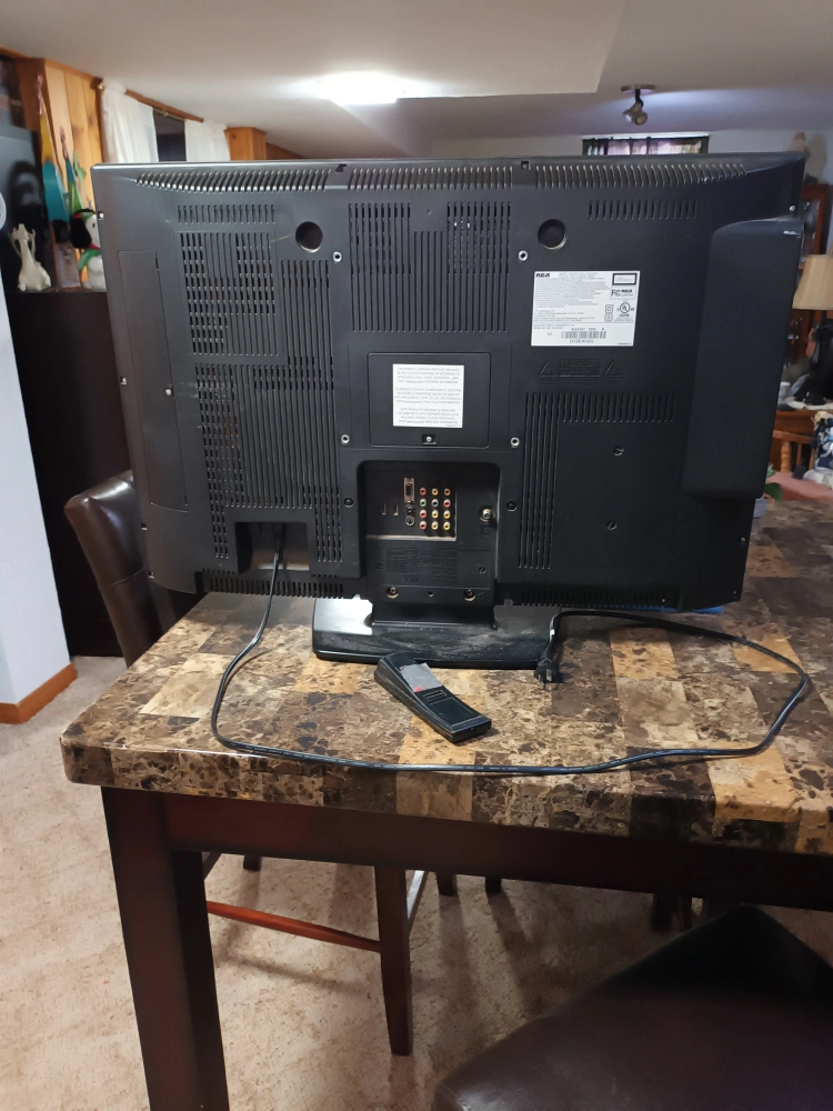 32 inch TV with remote. Includes power cable. RCA 32 inch lat screen tv RCA 32 inch flat screen tv model L32H32D AC/CA 120V 60HZ 160W AUGUST 2008 In good working condition Cames with Remote control Back has been tape on This is not smart Its a older tv Has a dvd player on sided Pick up only welland location Cash payment Thank you have a good day