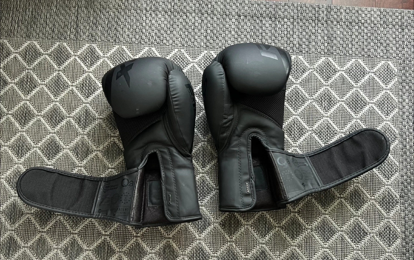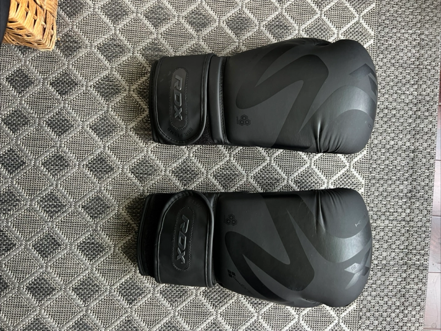 Pair of black RDX boxing gloves. Good condition. Adult size. Velcro closure. Mesh ventilation. Adult one size fits most