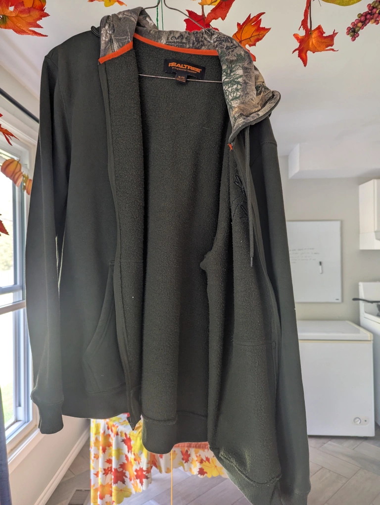Cozy Realtree hoodie in size XL. It's a full zip style with a camo lined hood. Perfect for layering or wearing on its own!