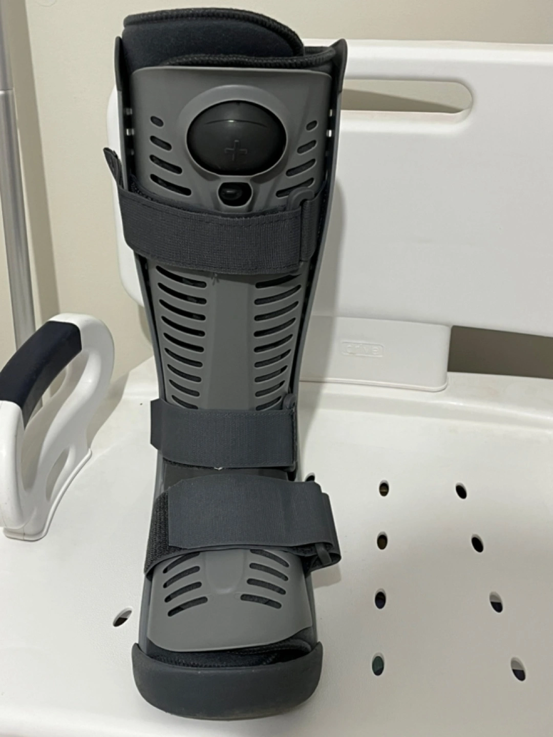 Medical walking boot with several straps and air pump. Gray colour. A helpful tool for providing stability and comfort. Bought in an orthopaedic clinic for $190+ tax inc. Size fits 6.5 women’s Used for only 3 months Pickup around Killarney