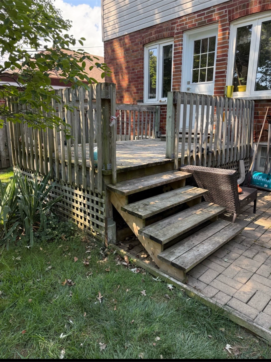 My deck will be dismantled/replaced tomorrow Oct 15, 2025. Pressure treated wood will be available for pick up on Thursday. Price is negotiable. Would like to see this wood reused rather than end up in landfill. Available for porch pick up near Victoria Park and Eglinton. Address given when pick up date is given.