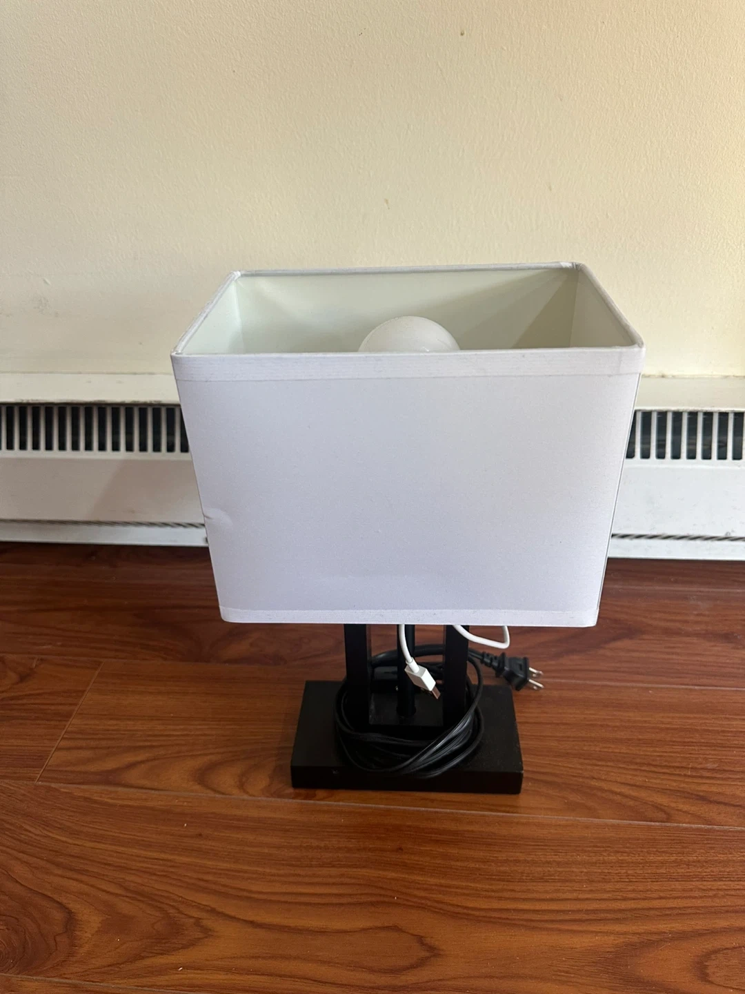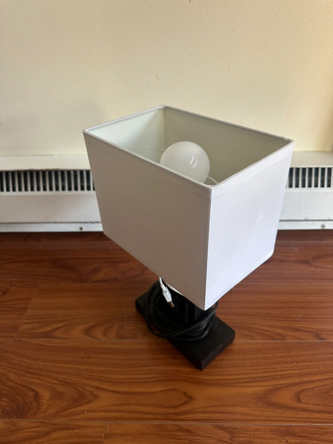 TABLE LAMP FOR SALE!! 💡 Comes with a free light bulb ;) A simple and modern table lamp with a white rectangular shade and black base It's perfect for adding a touch of light to any room It's in great condition and ready to brighten up your space 📍Pick-up: Don Mills & McNicoll 💵 Payment Method: - Cash - Interac e-Transfer