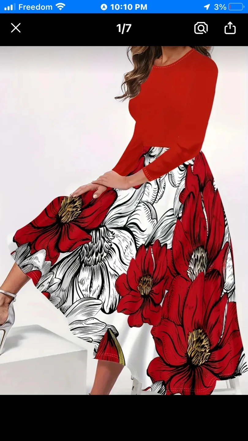 Elegant Floral Print Long Sleeve Midi Dress for Women - Crew Neck, Machine Washable - Perfect for Spring/Fall