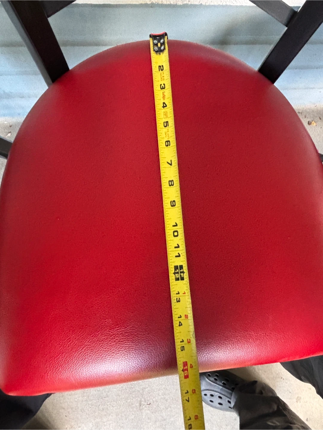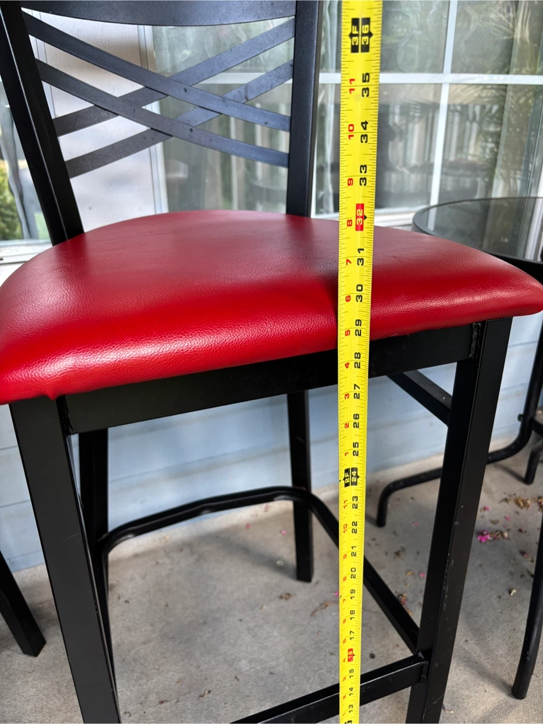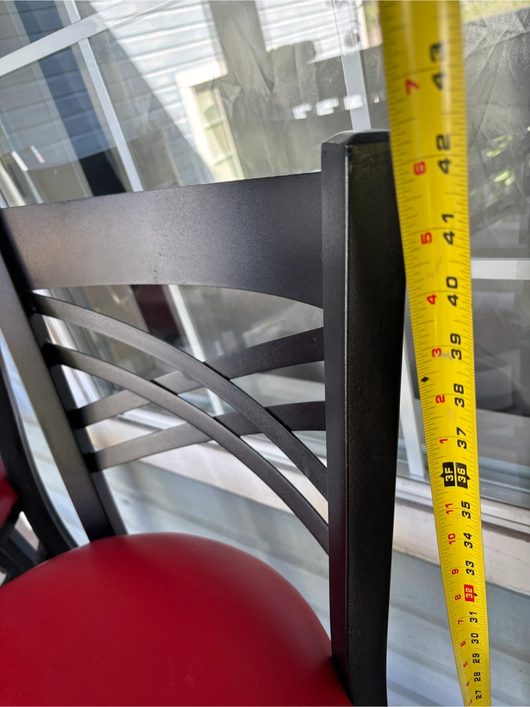Selling a set of 4 bar stools. They feature a black metal frame and a vibrant red seat. The seat measures approximately 17 inches in width, and the total height of the stool is about 42 inches. Great for adding a pop of colour to your kitchen or bar area! $40 each or 4 for $150
