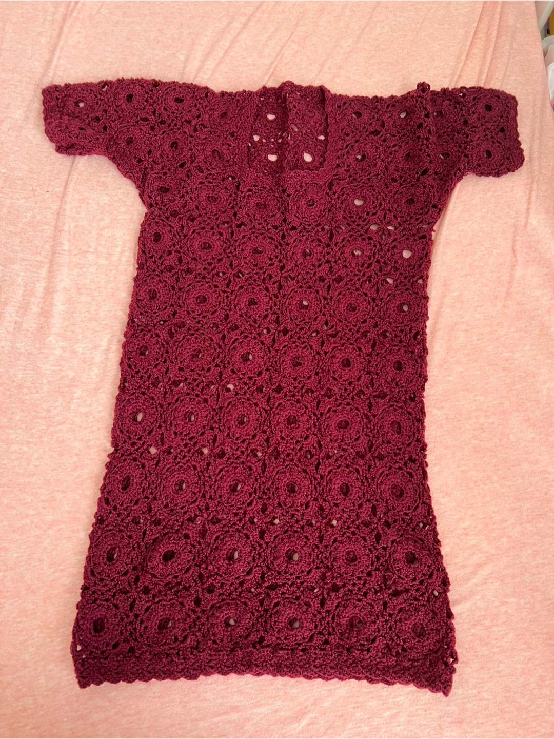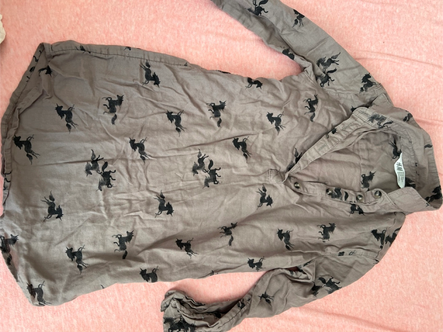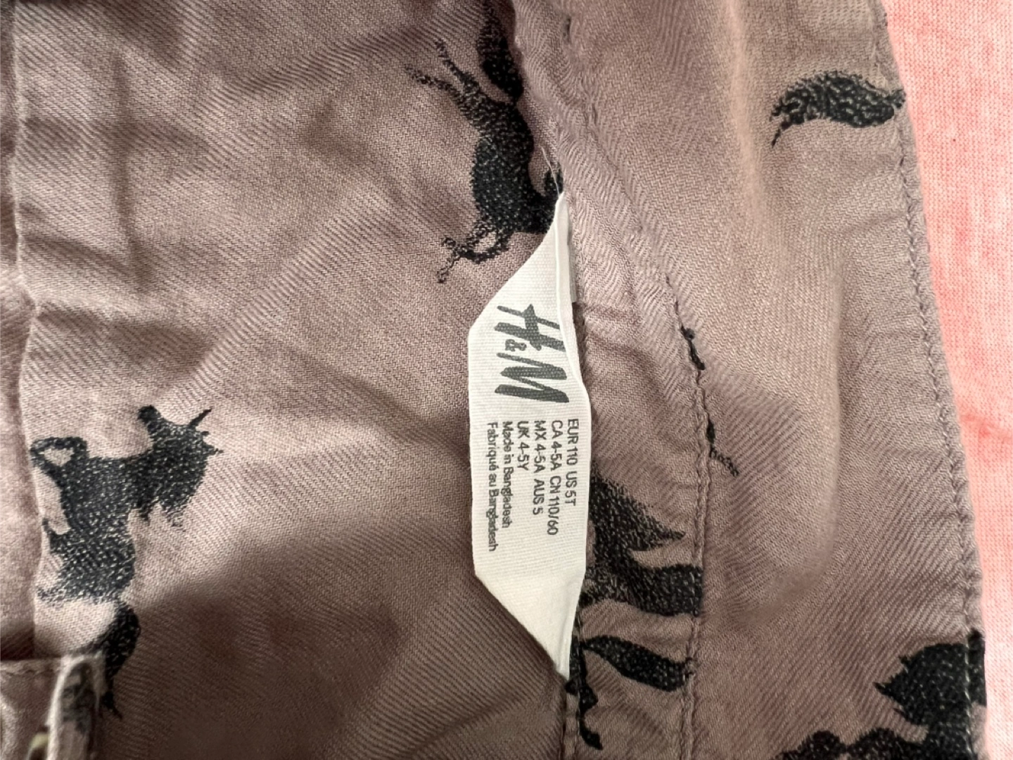 Red Crochet top for girls! Cute grey long-sleeved shirt from H&M for kids! The size is 4-5Y. It has a fun all-over print design. Perfect for your little one's wardrobe!