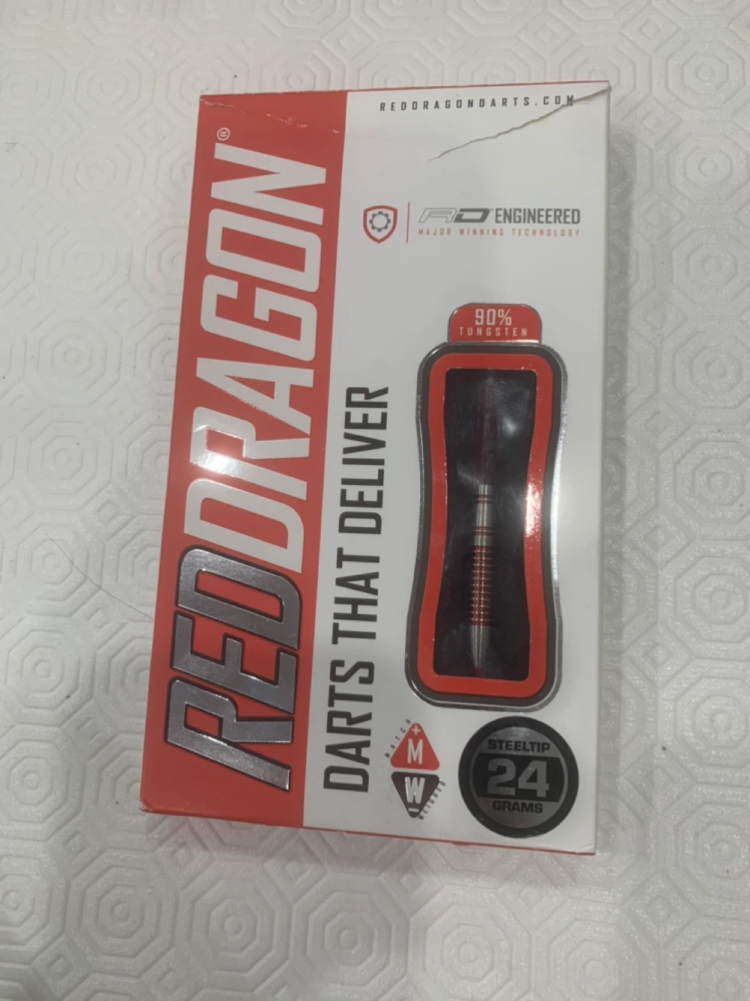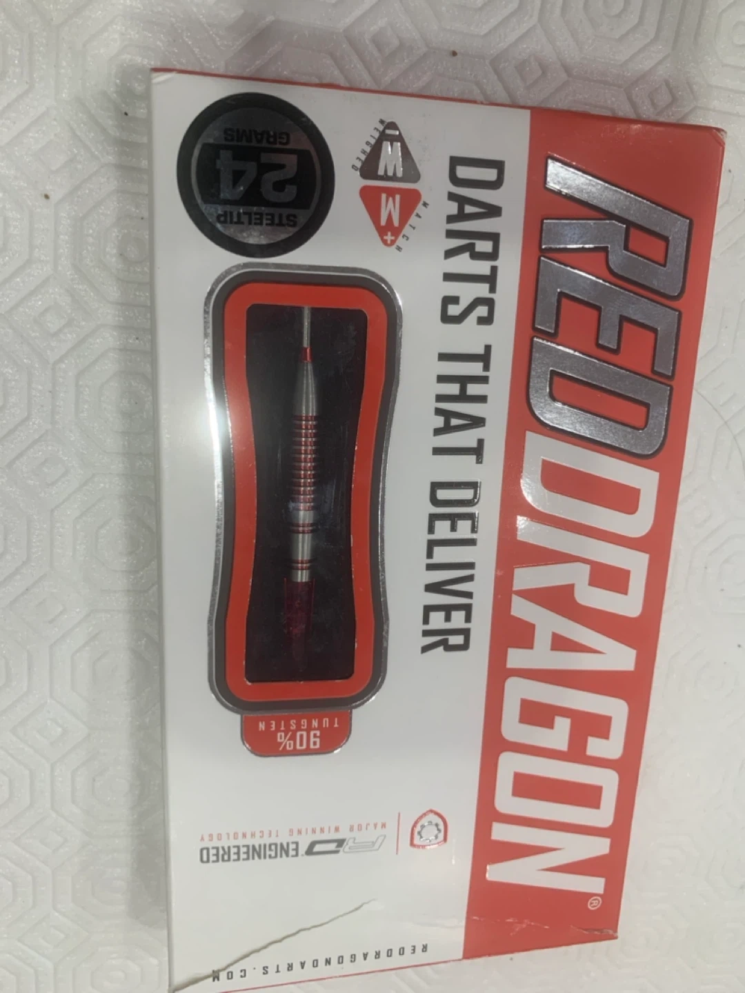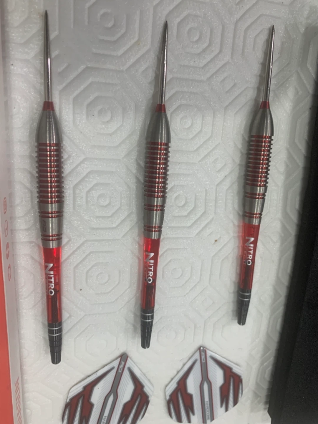 Selling a set of Red Dragon darts! They come with NitroTech shafts and hardcore flights. The darts are 90% tungsten and available in 24g, 26g, and 28g. Also included is a set of flights and shafts. The shafts are a medium size (42mm).
