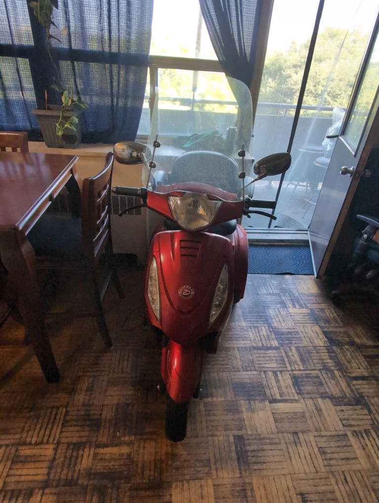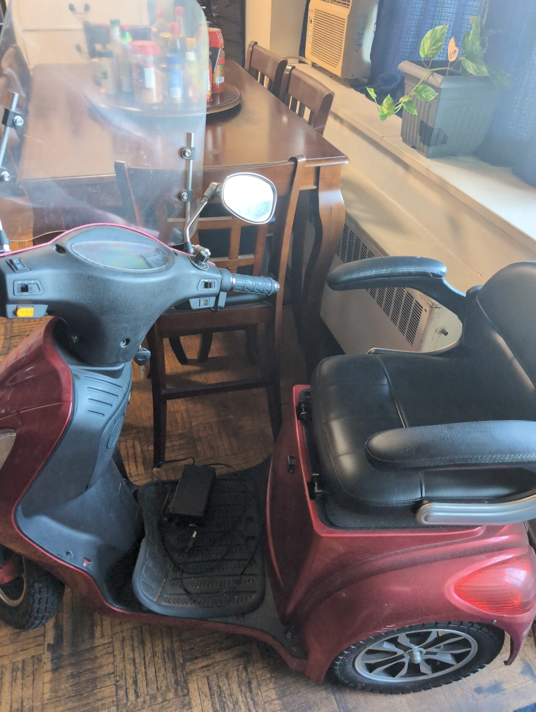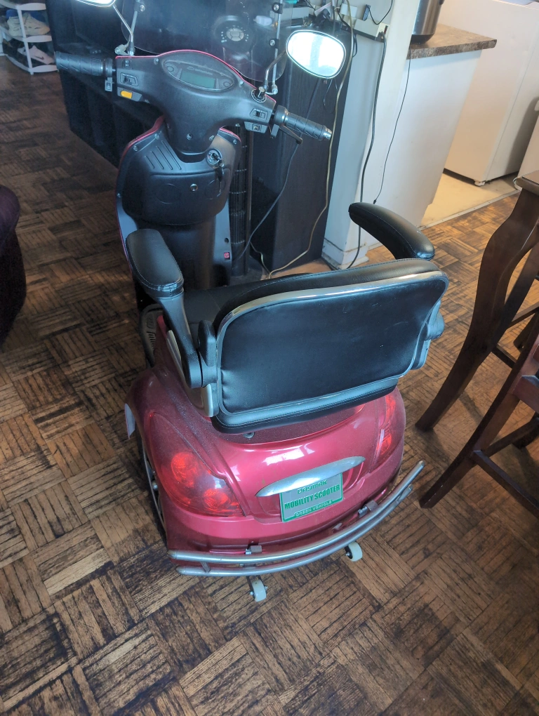 Selling a red electric mobility scooter. It's in good condition and ready to go! Perfect for getting around town with ease. It has a comfortable seat and easy-to-use controls. brand new tires and brakes. NEEDS BATTERIES. 5* 12v-20ah.