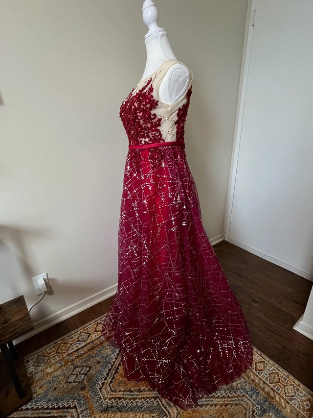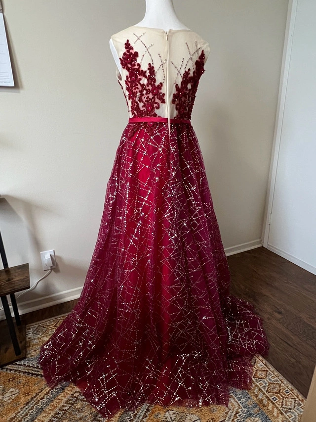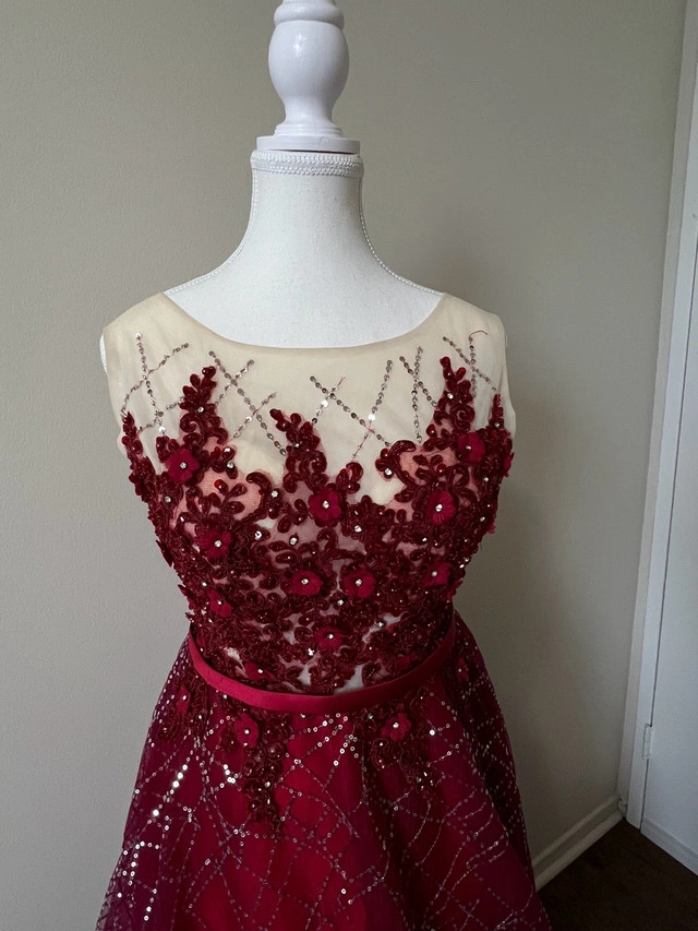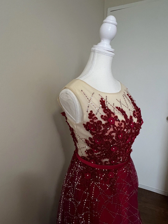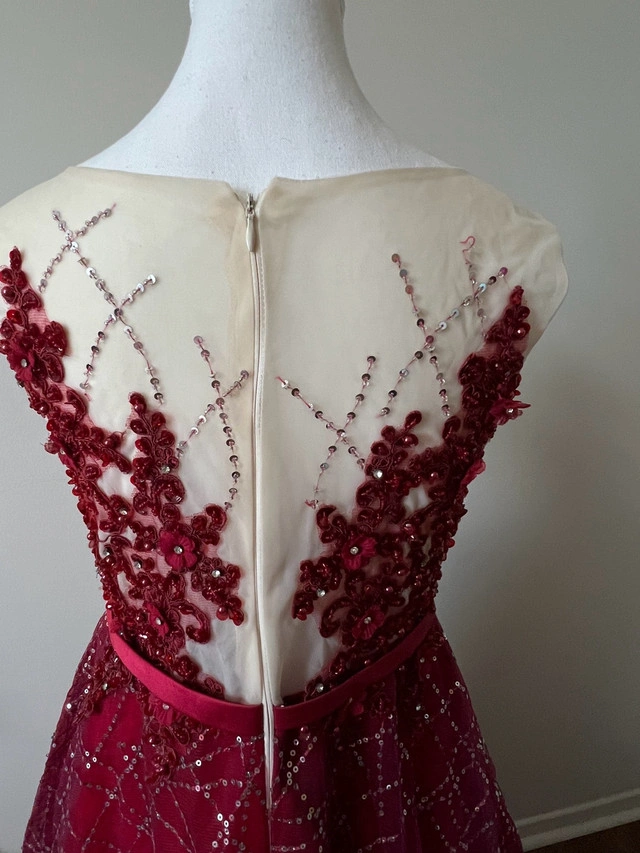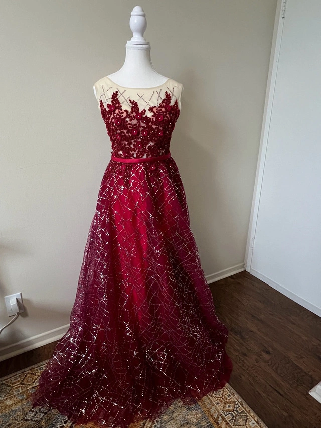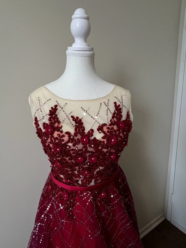 Beautiful party gown with floral embroidery. Size S-M. Also fits sizes Small (4-6).