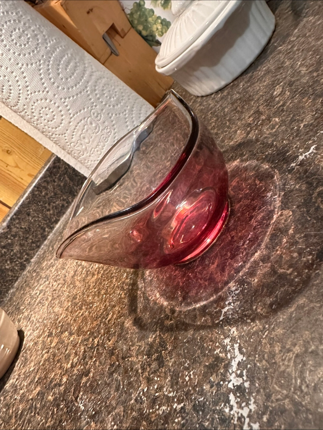 Selling a beautiful red glass bowl! It would look great as a decorative piece or for serving. It's in great condition and ready for a new home