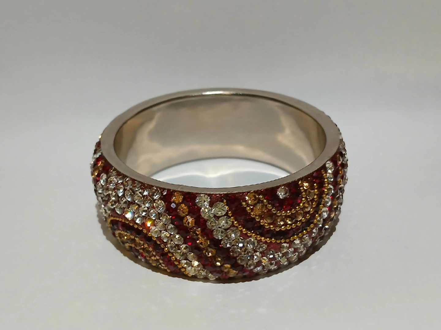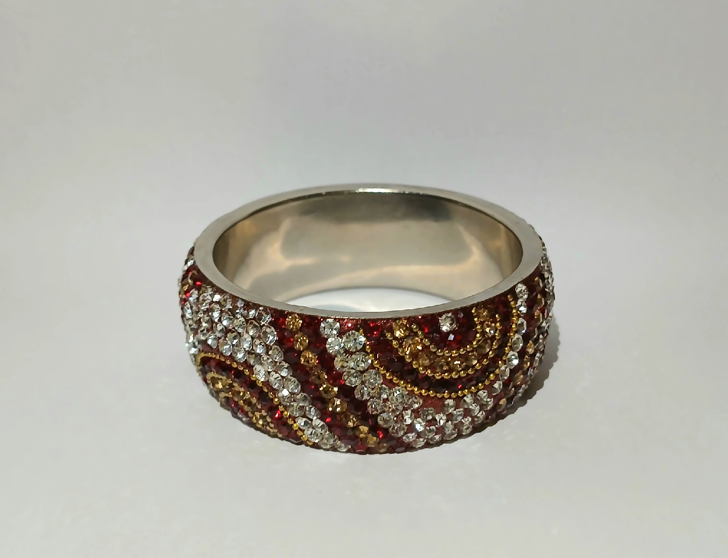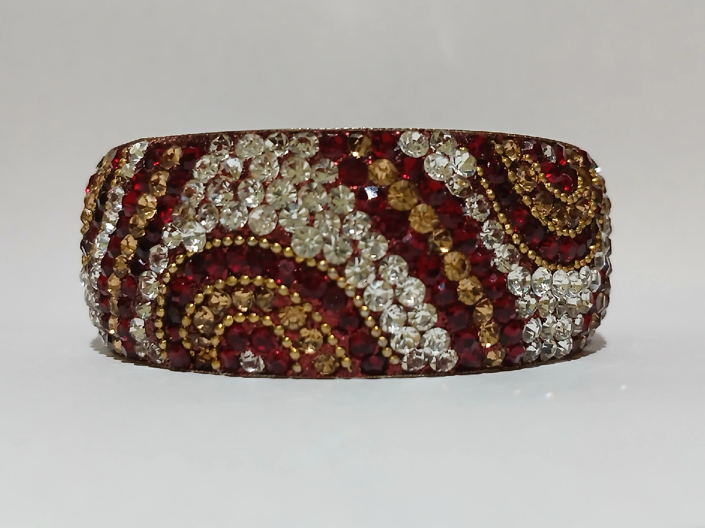 A beautiful bangle featuring red and gold rhinestones! It's never been used.