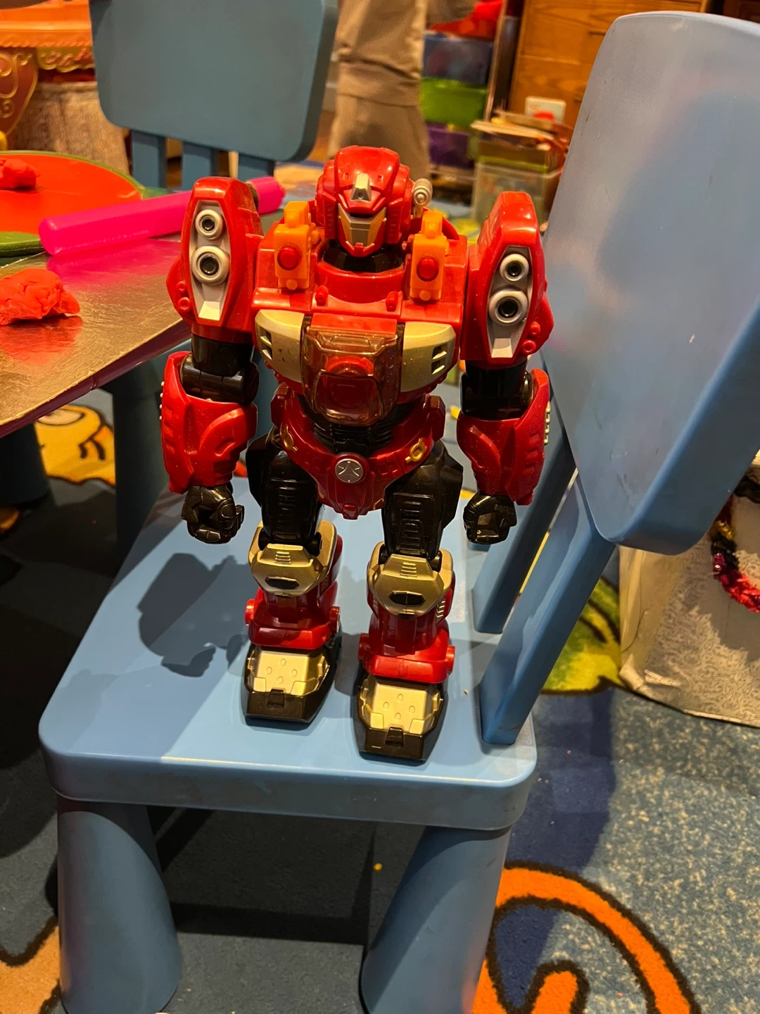 Selling a red robot action figure. It's in great shape and ready for a new home! Perfect for kids who love robots and action figures