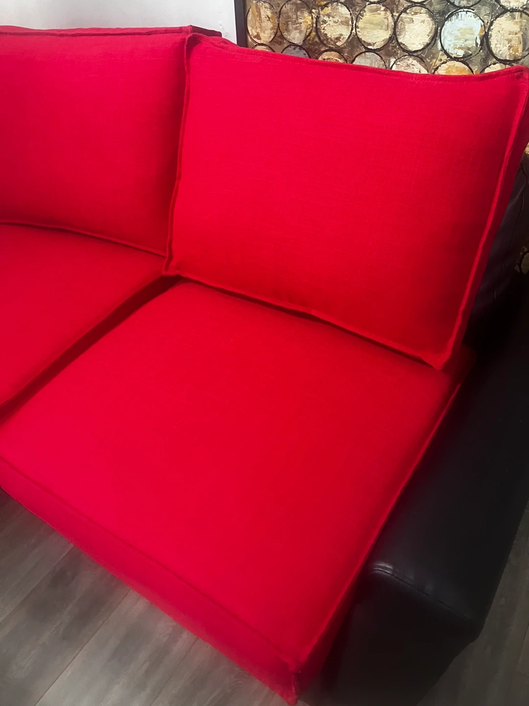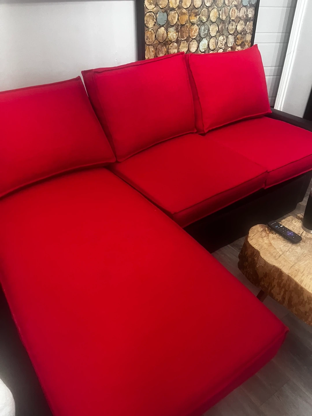 Anyone looking for replacement red sectional sofa cushions only from a Structube sectional? Includes :3 back pillows 18” H x 24”L x 8” D 1 long chaise cushion 24” W x 52” L x 6” D 2 seat cushions 24” L x 26” W x 6” D Could possibly be used outdoors? Pick up only. Closest intersection is Jane St and Eglinton Ave W.