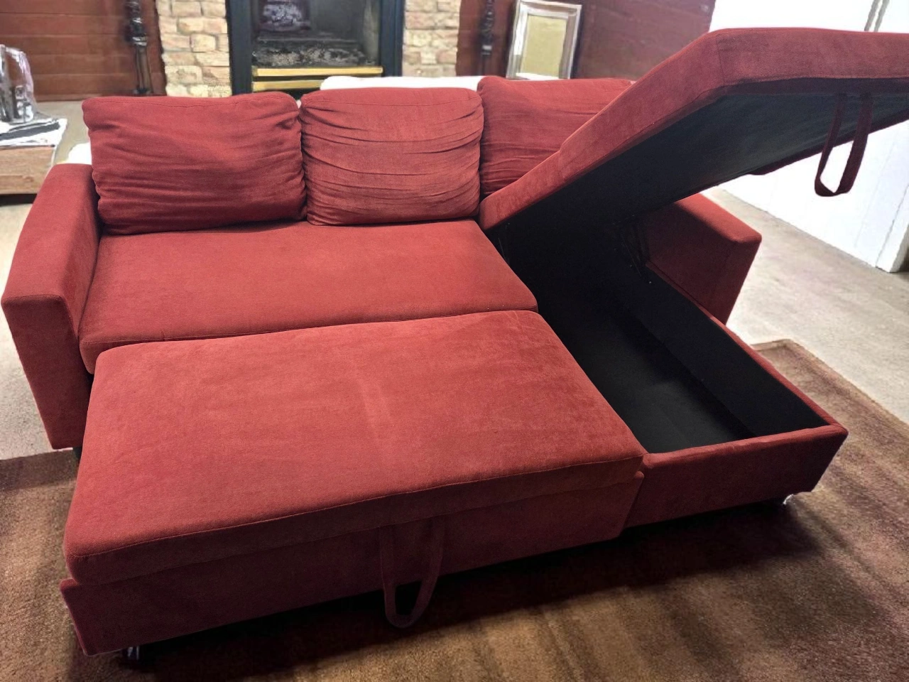Selling a comfy red sectional sofa. It's in great shape and features handy storage compartments. Perfect for a living room or rec room! Delivery available for a fee. We can also dispose of your old sofa for $80 Delivery available for a fee. We can also dispose of your old sofa for $80 Location 1615 Franklin st Vancouver