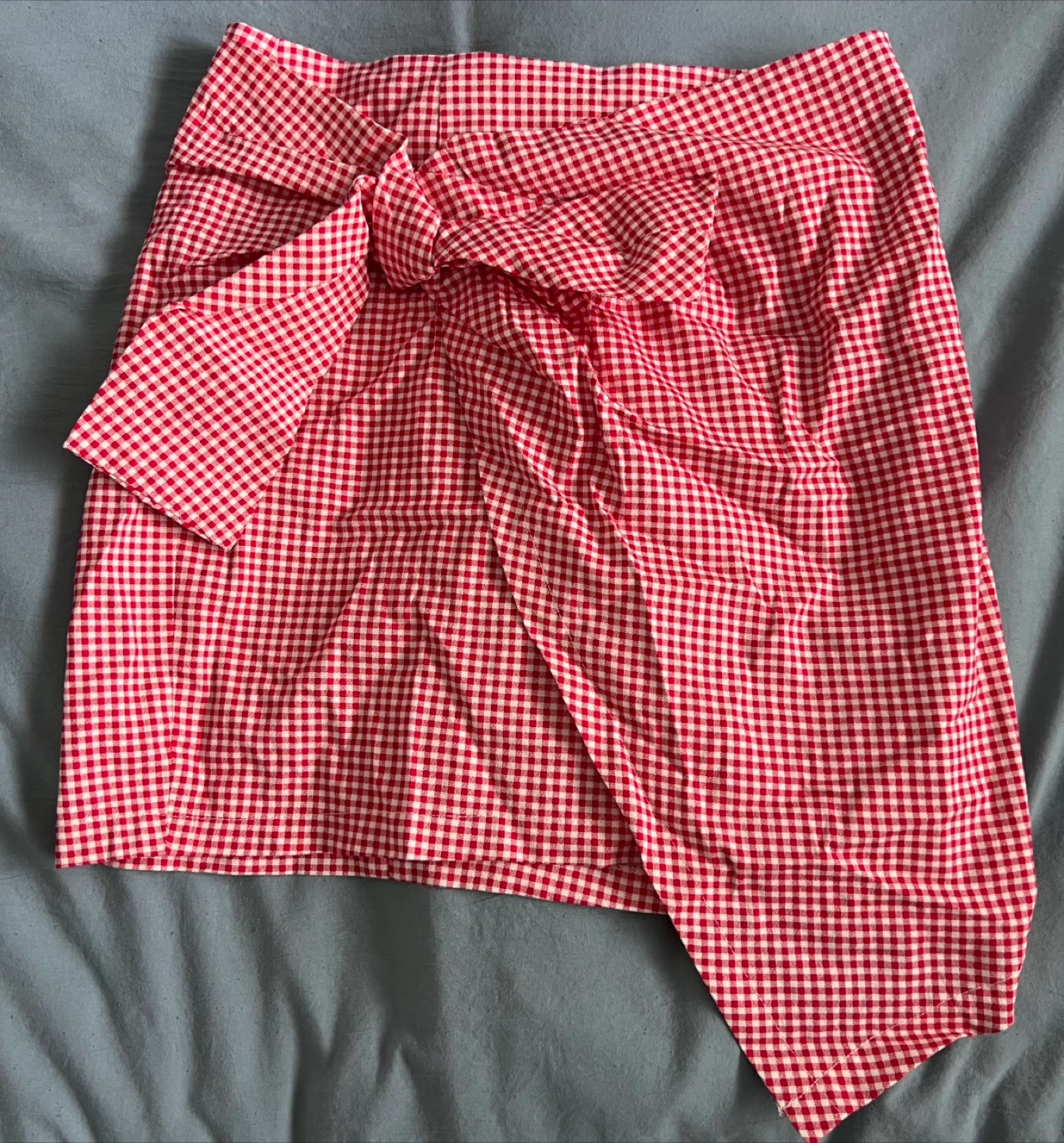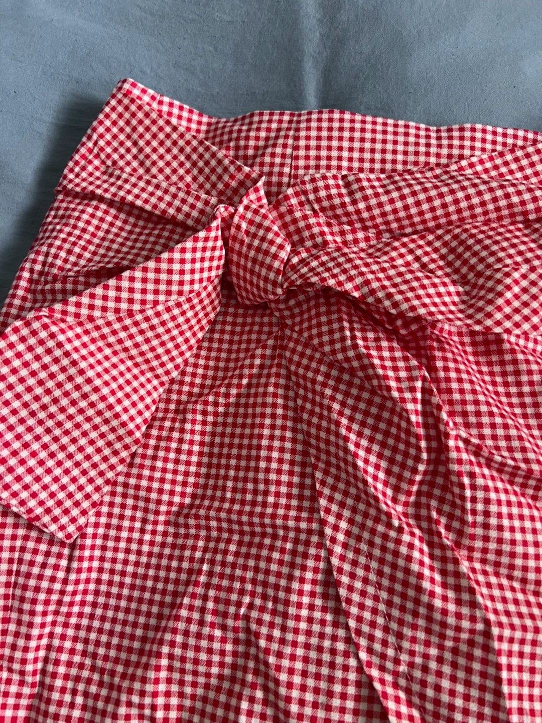 Selling a cute red and white gingham skirt! It features a stylish tie