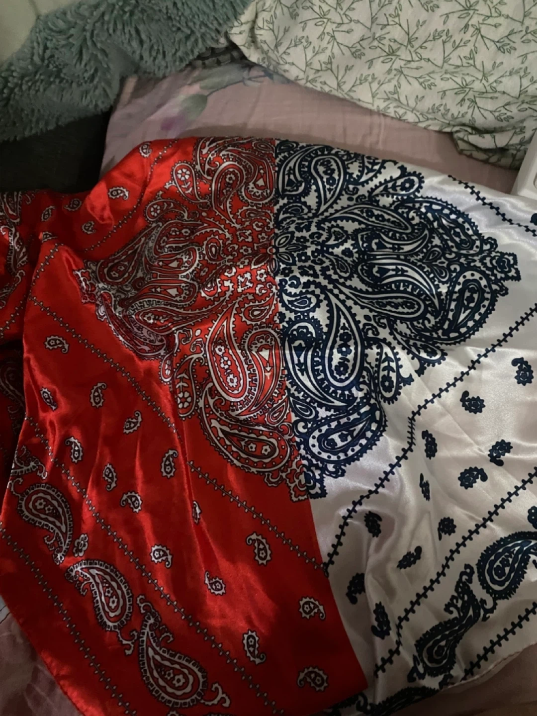 vibrant scarf featuring a classic paisley pattern. It's a mix of red and white, perfect for adding a pop of colour to any outfit. The material feels smooth and silky! Note: have been used but it’s washed and ready to wear/use! Free! (PICKUP ONLY)