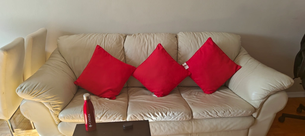 I'm selling a set of three throw pillows. They're a mix of red and white striped patterns. Perfect for adding a pop of colour to your living space! Also check my other Listings too✅