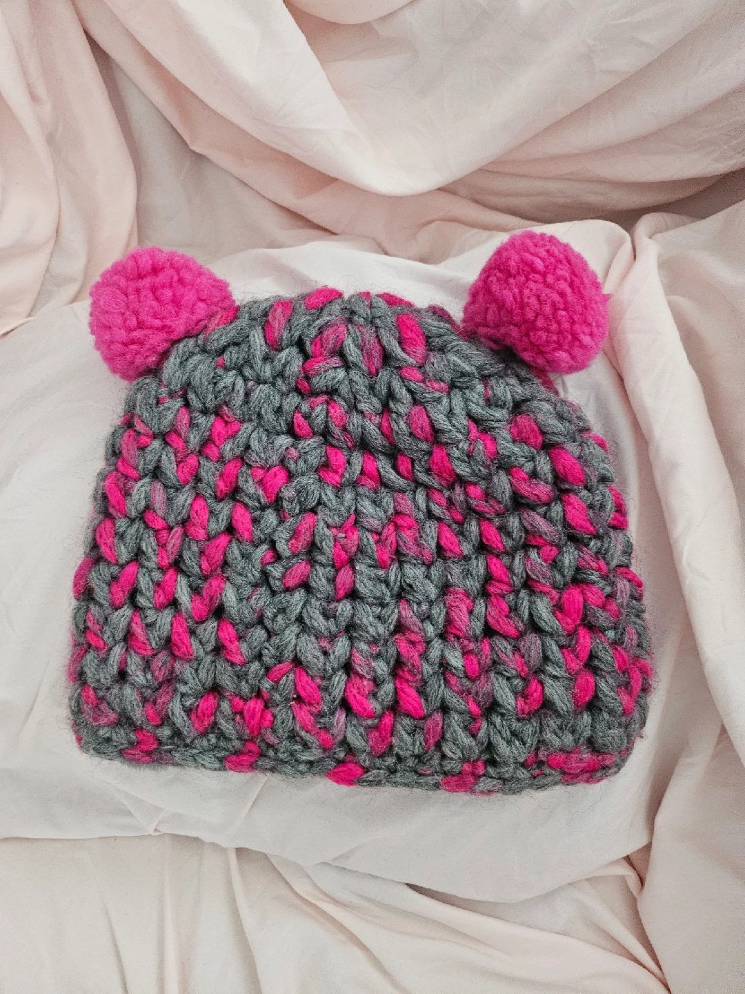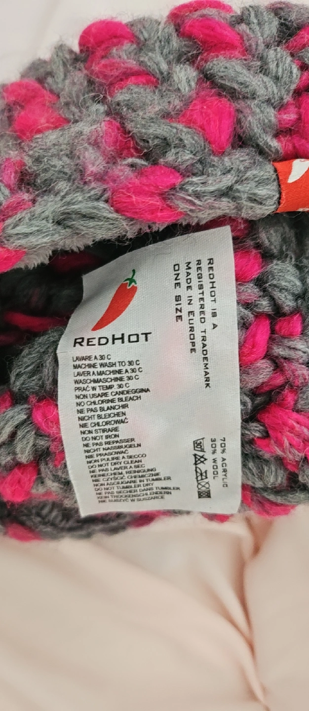 Keep your head warm with this Redhot knit beanie! It's a blend of 30% wool and 70% acrylic, perfect for those chilly days. The beanie is one size and features a stylish grey and pink colour combination. It's in great condition and ready for a new home