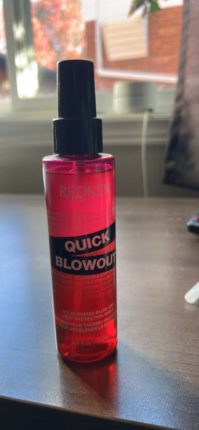 Selling a Redken Quick Blowout heat protection spray! It's an accelerated blow-dry heat protection spray that's lightweight. It comes in a 4.2 fl oz / 125ml bottle, perfect for speeding up your hair routine and protecting against heat damage. Brand new retails for $32 on Amazon.