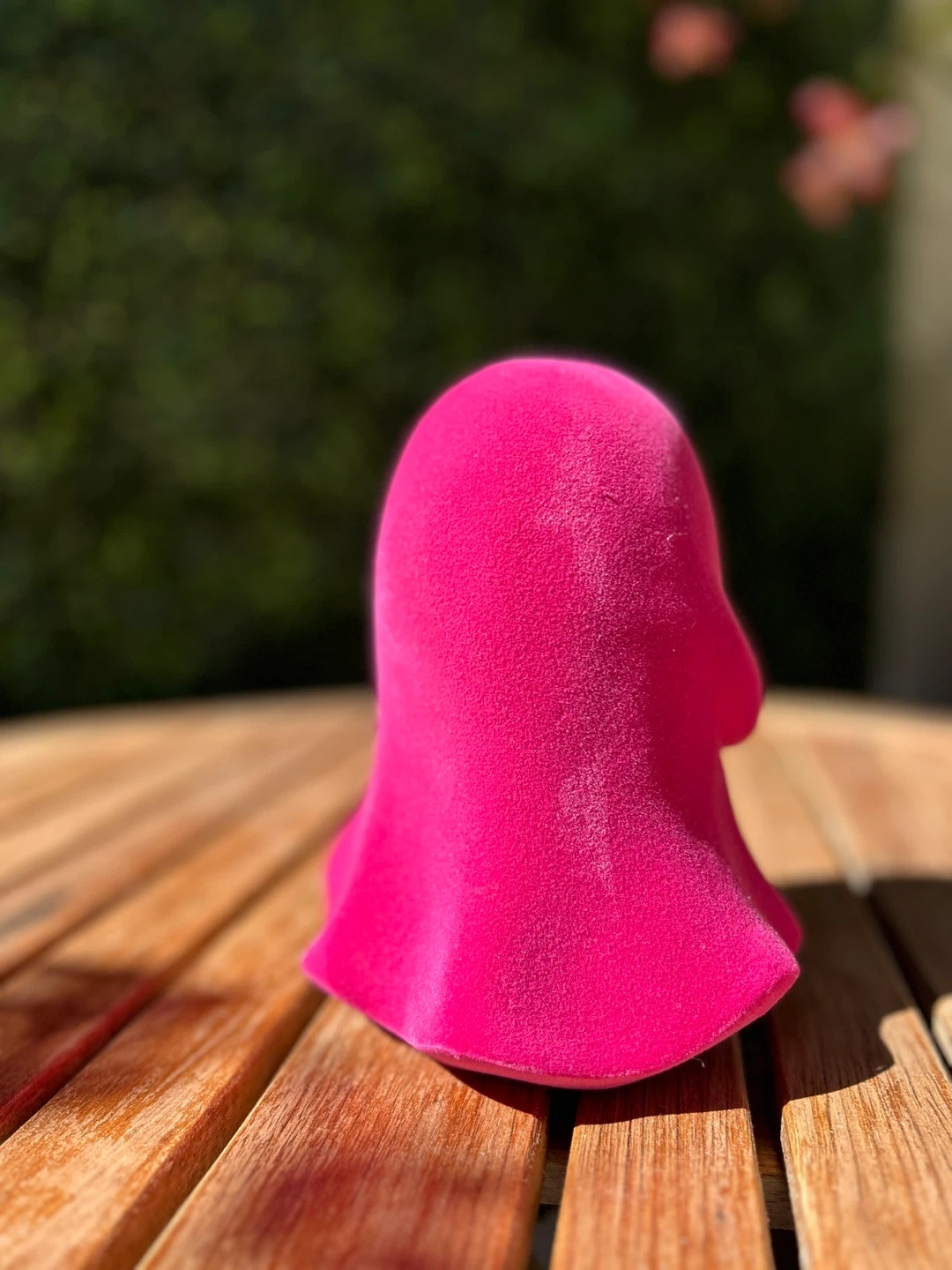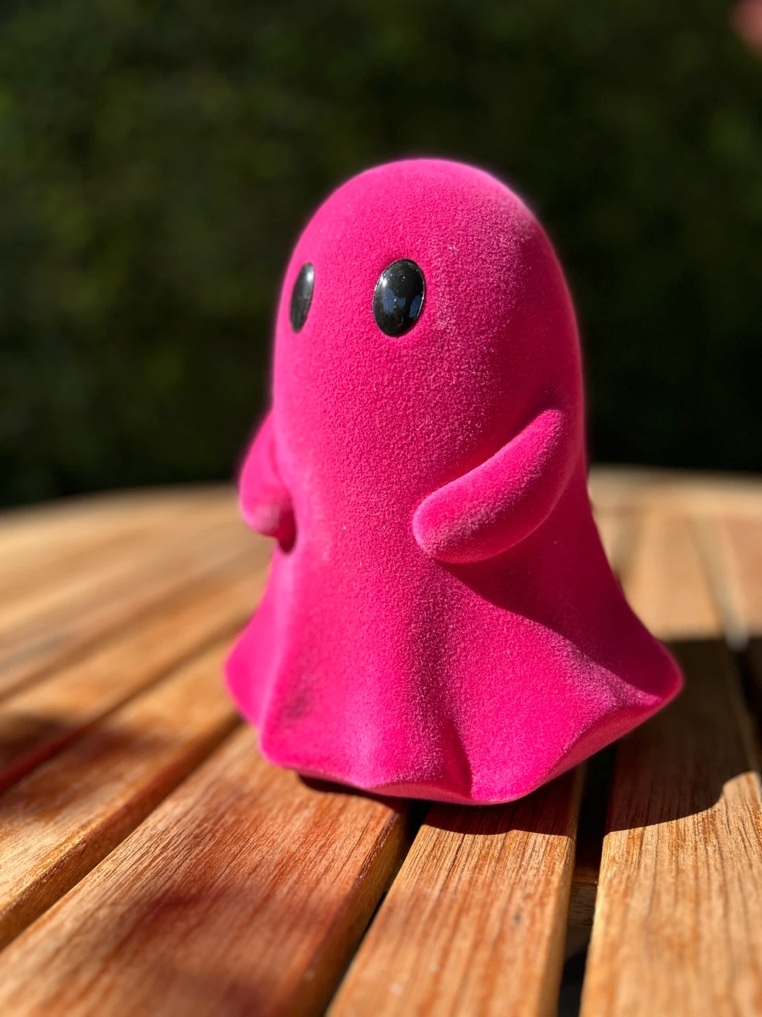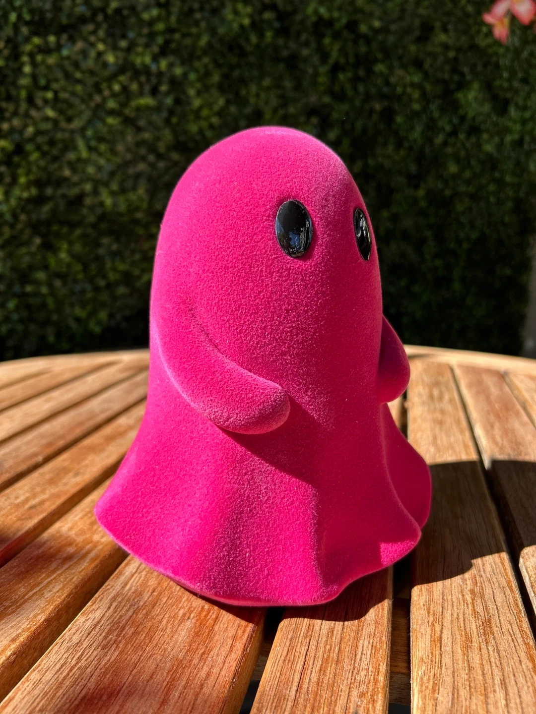 Selling a cute pink flocked ghost figure! It's in great condition and would be perfect for a Halloween decoration or just a fun little friend to have around. 7” tall 6” wide
