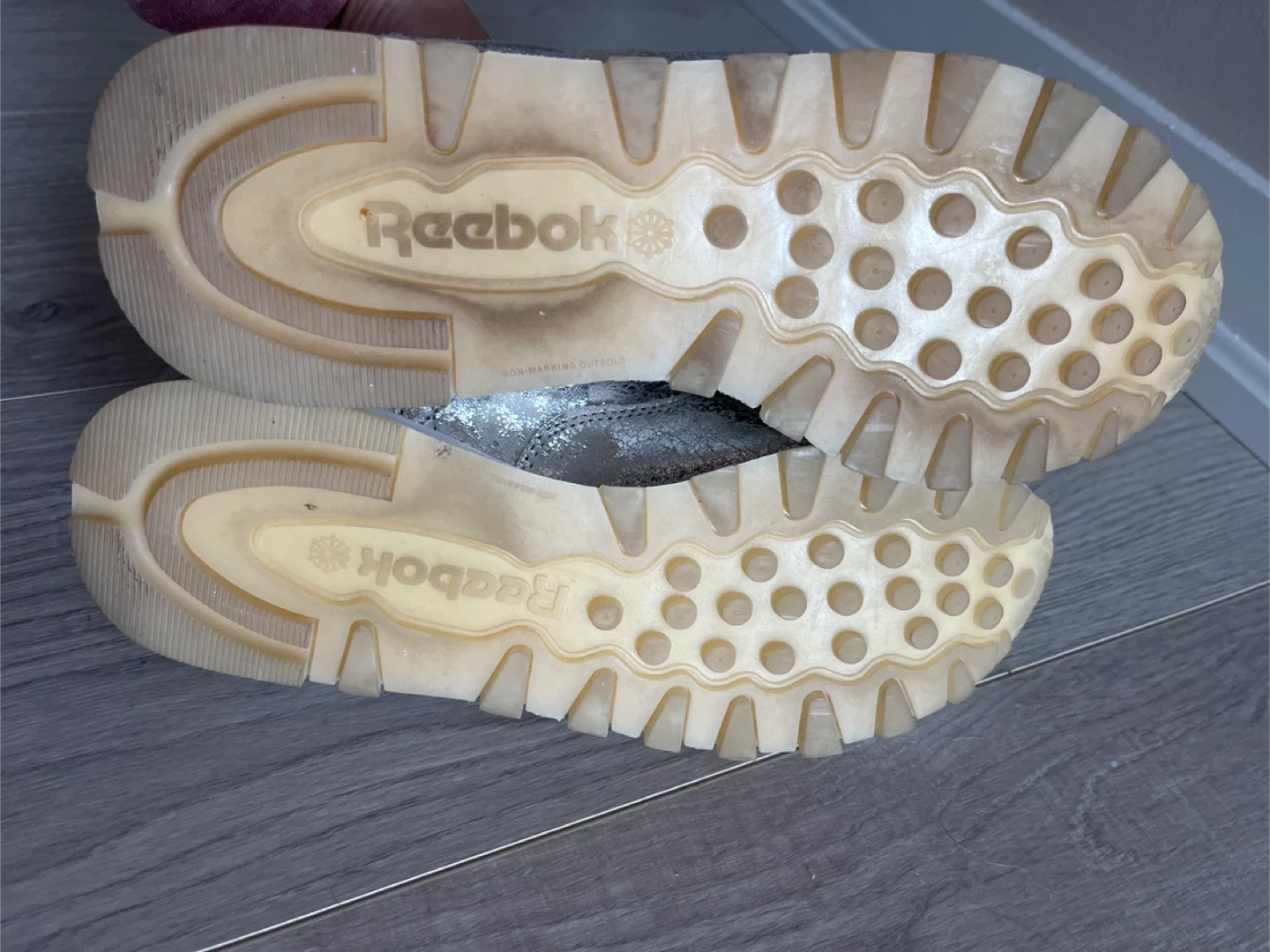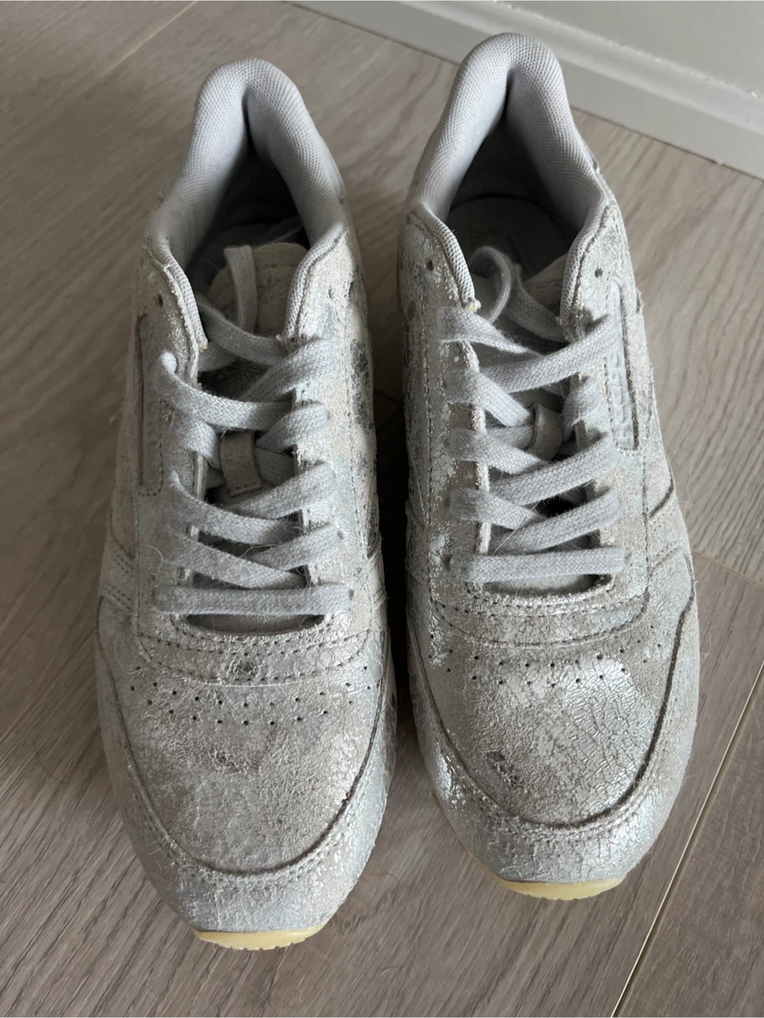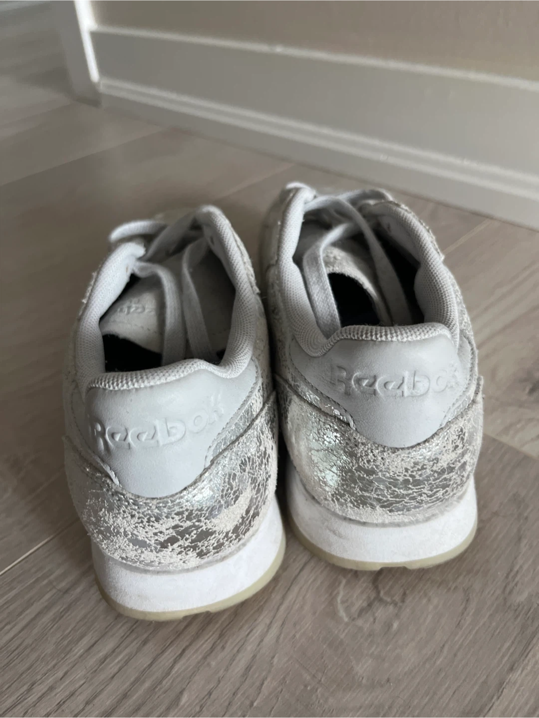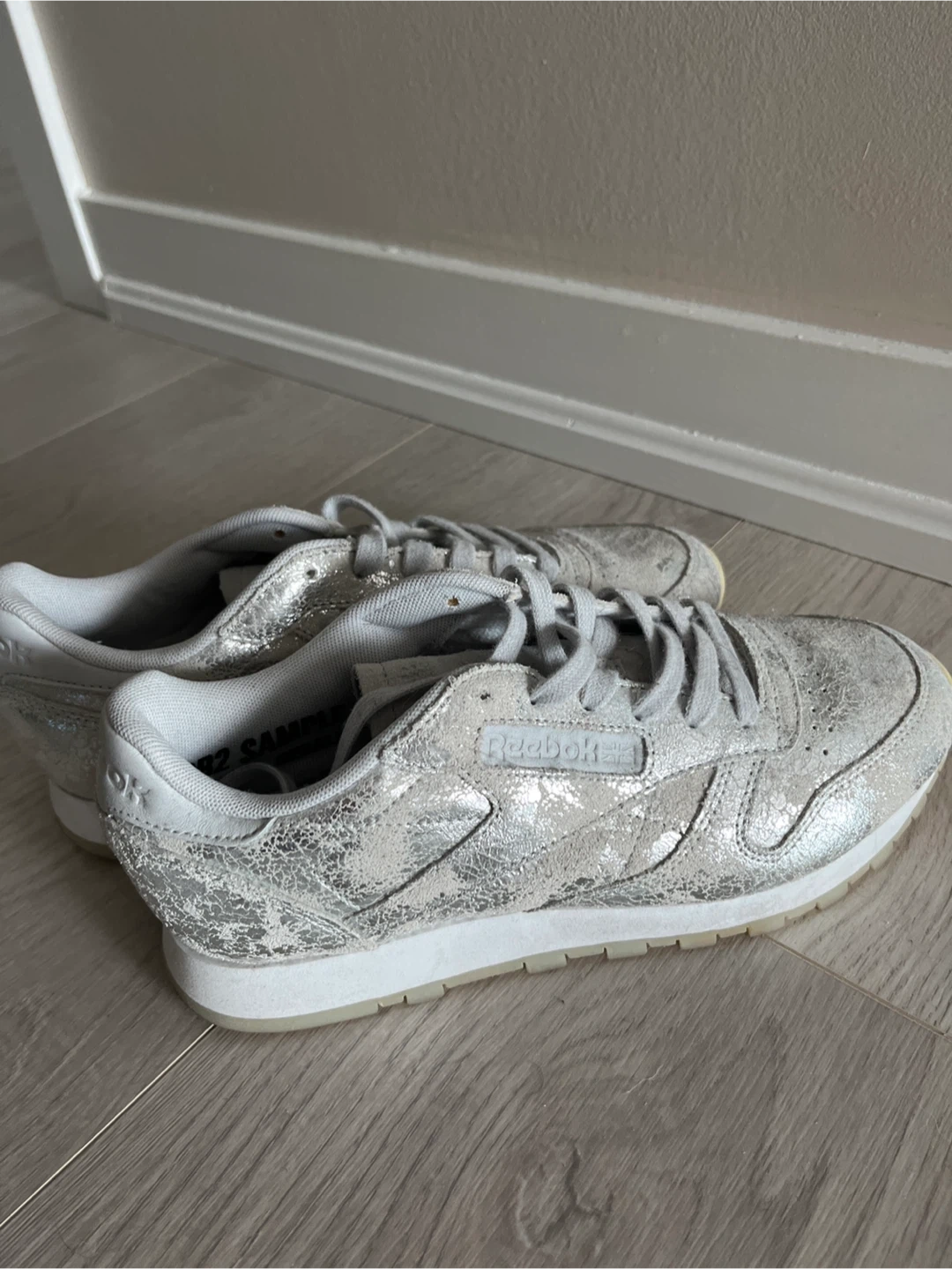 Selling a pair of sample Reebok Classic Leather sneakers in silver! Women’s size 7. They're in good condition and ready for a new home, only worn once. Pick up in Liberty Village
