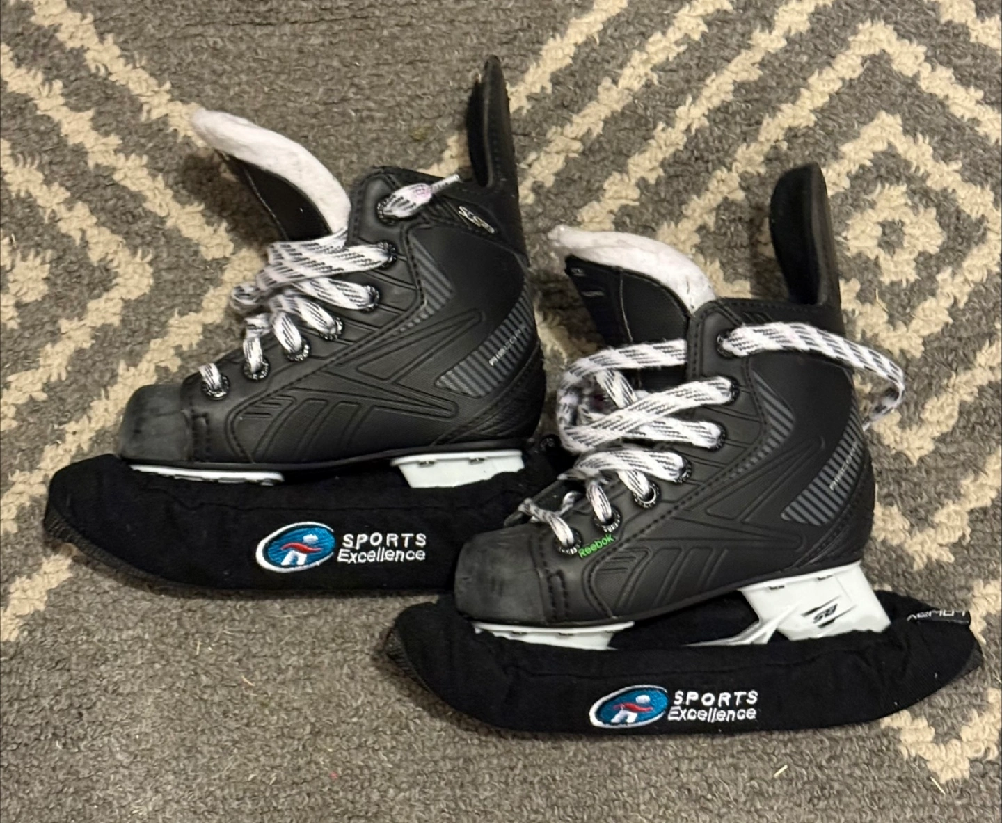 Selling a pair of Reebok ice skates in size 120. They're in excucondition and ready for the rink! Perfect for kids learning to skate or just having fun on the ice. Come with blade covers.