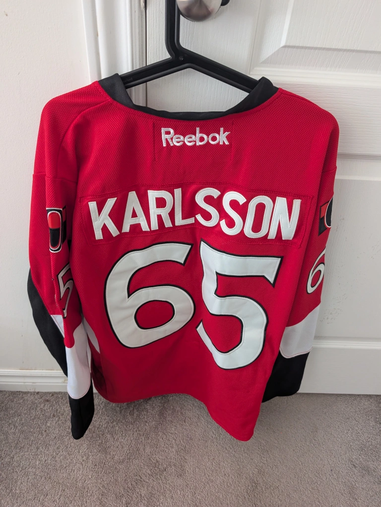 Selling a Reebok Ottawa Senators jersey featuring Karlsson #65! The jersey is a size medium (48). It's in great shape and ready for a new fan.