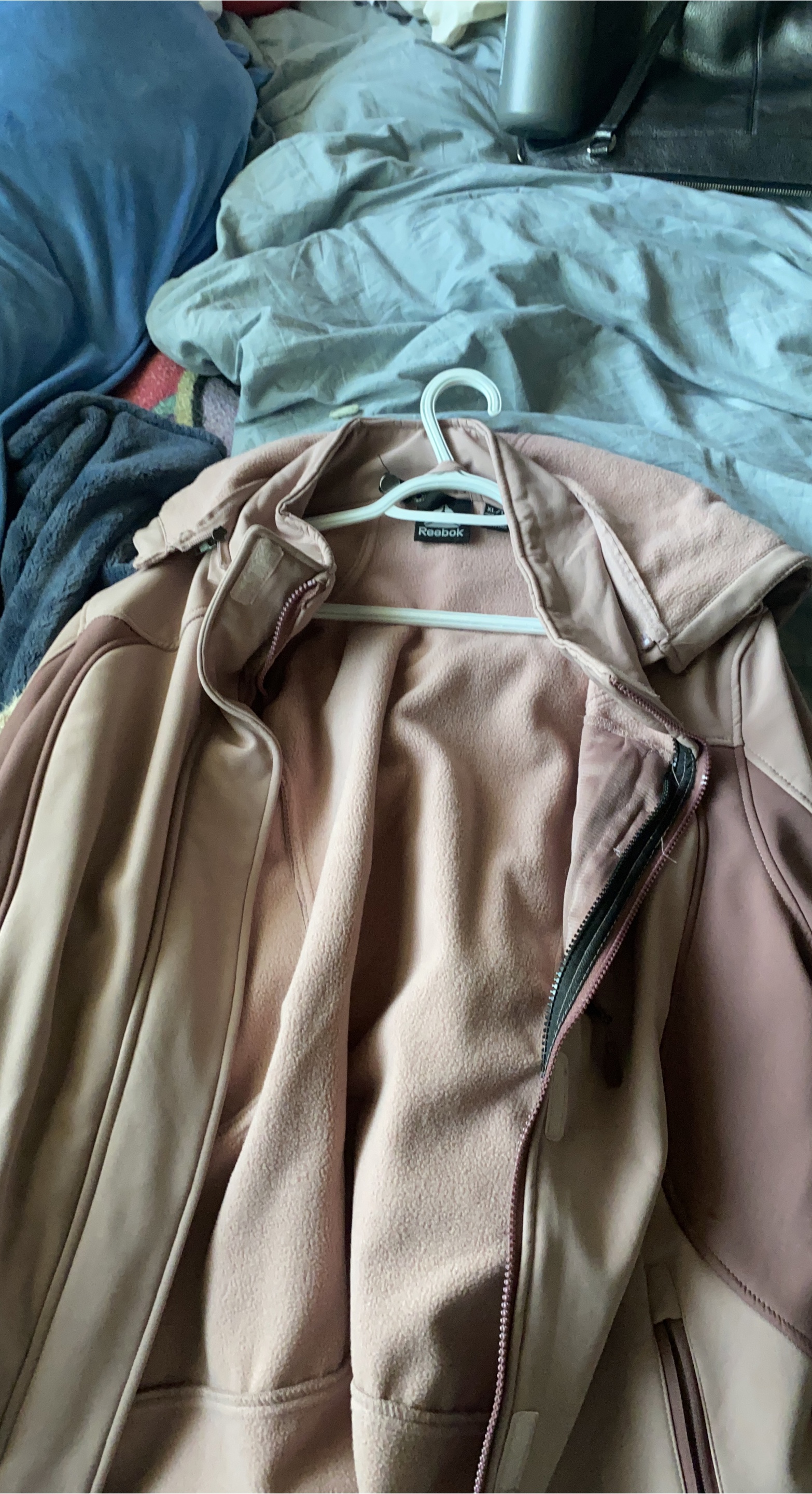 Cozy Reebok fleece jacket in a lovely shade of pink! It's a size XL and ready to keep you warm on those chilly days. Perfect for layering or wearing on its own for a casual look