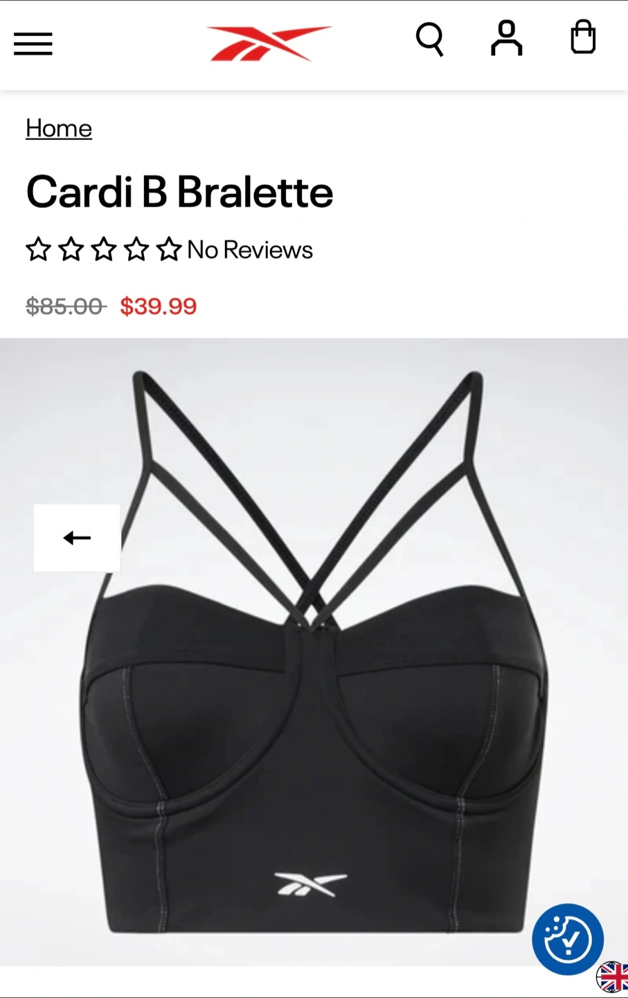 Reebok sports bra / bralette S size, black Brand new with tag