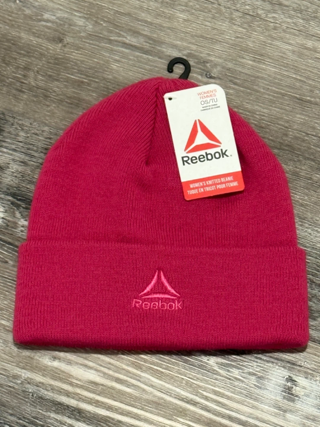 Selling a Reebok women's knitted beanie in a vibrant pink colour! It's a one-size-fits-all (OS/TU) Perfect for keeping warm this winter! Pick up Sage Hill Smoke and pet free home Cash only please Check out my other listings Thank you