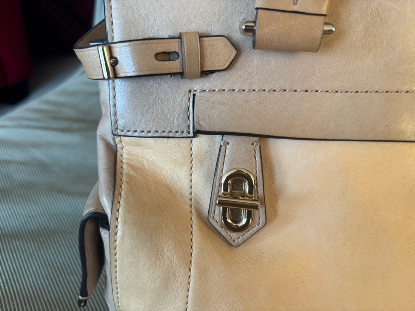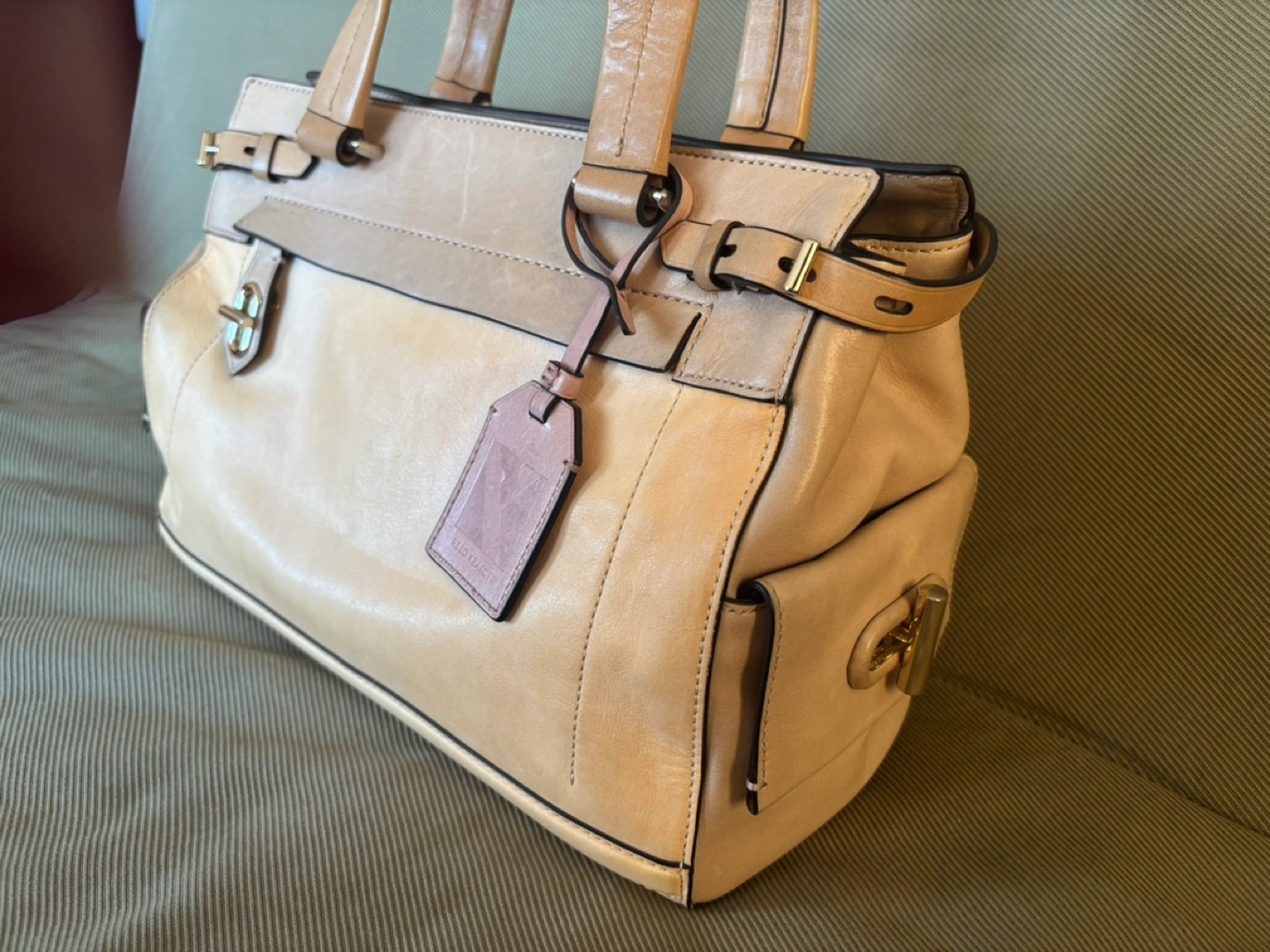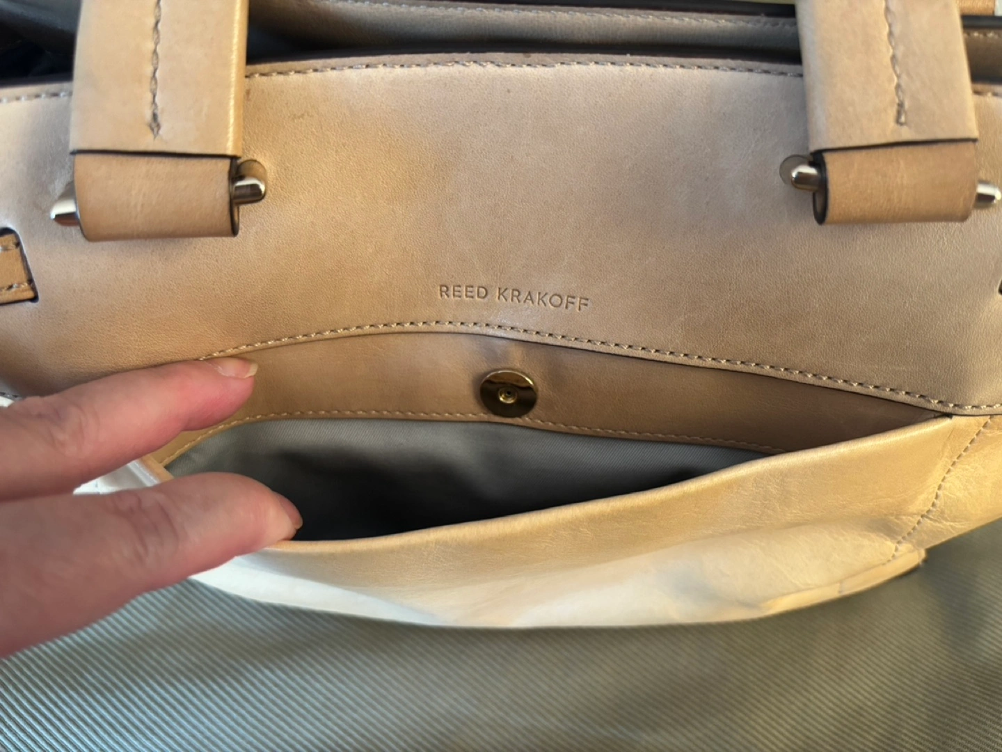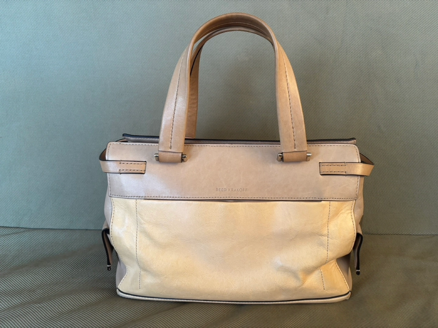 Beautiful beige leather handbag. Two top handles. Features gold-toned hardware. Small external pockets. Leather tag with Reed Krakoff branding. With original dust bag. If add is up it’s still available. Meet up in front of Orpheum theater (Seymour x Smithe). Please pay in cash.