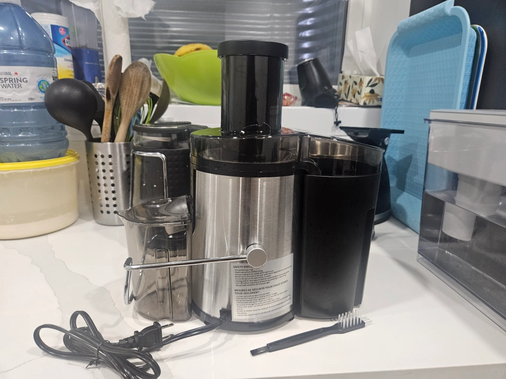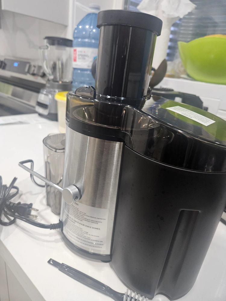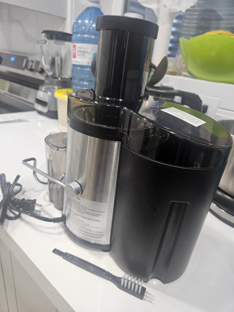 Reemix Juicer Machine, Big Mouth Large 3” Feed Chute for Whole Fruits and Vegetables, Easy to Clean, Centrifugal Extractor, BPA Free (Black, 500W). It's in great condition used once and comes with a cleaning brush. Perfect for making fresh juice at home!