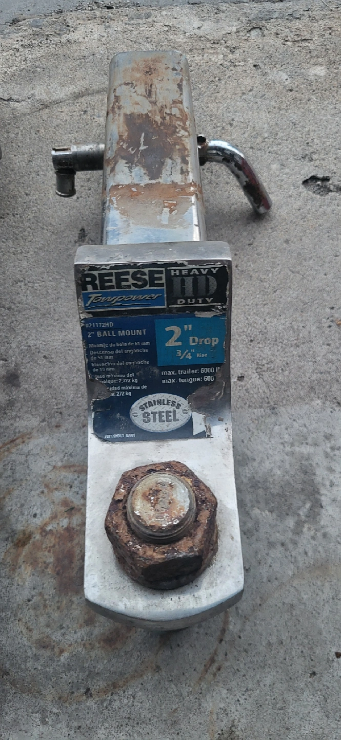 Selling a Reese Towpower heavy duty 2" ball mount with a 2" drop and 3/4" rise. It's made of stainless steel and has a maximum trailer weight of 6000 lbs and a maximum tongue weight of 600 lbs