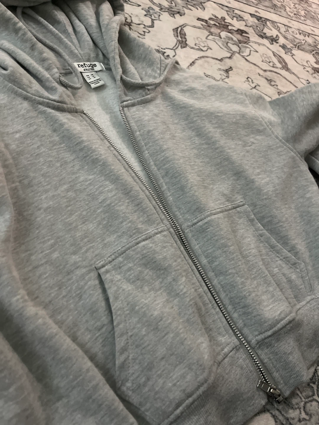 Selling a Refuge Athletics cropped zippered hoodie in a lovely grey colour! It's a size medium and in great condition. Perfect for layering or wearing on its own!