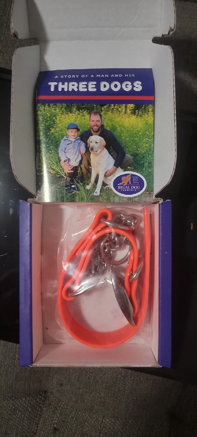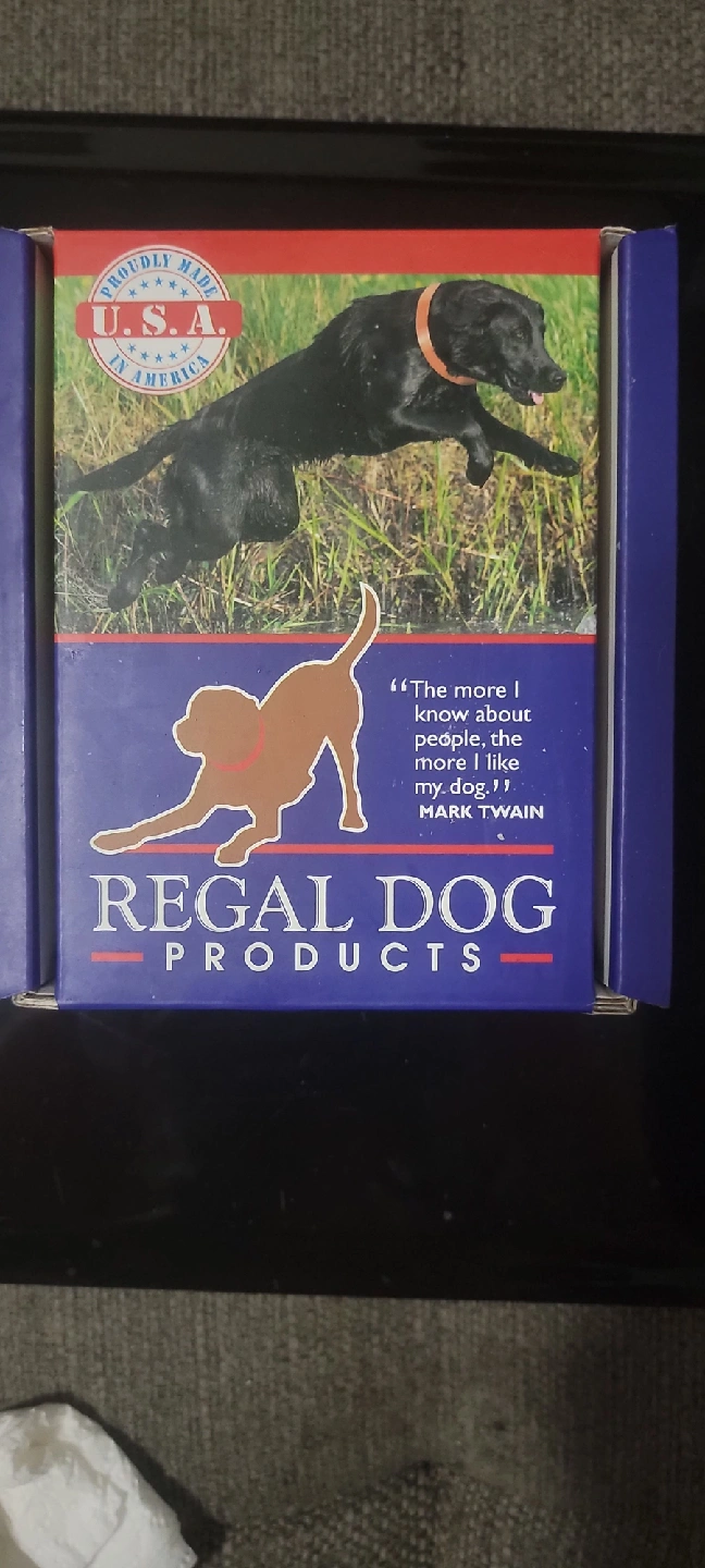 Selling a Regal Dog Products collar! It comes in its original box with a book called "Three Dogs: A Story of a Man and His". The highest quality dog products for your K9 companion, made from sustainably sourced materials, and manufactured in the U.S.A