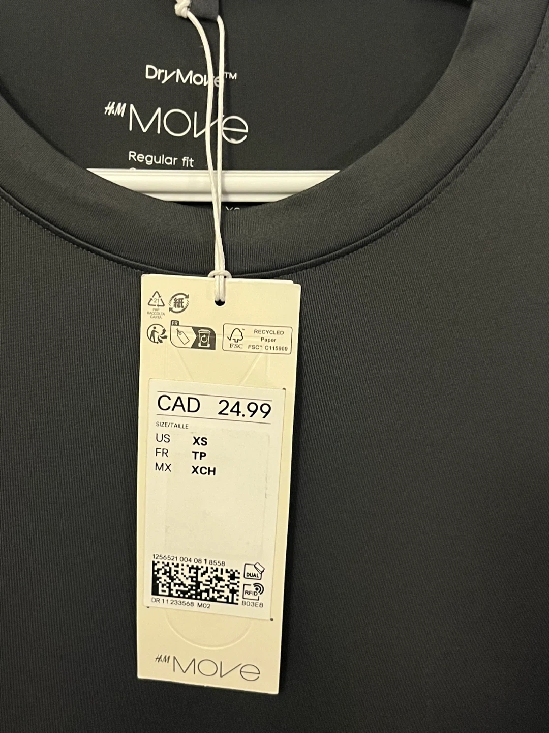 H&M Move Regular-Fit Sports Shirt with DryMove™ • Size: XS • Color: Dark Gray (Solid) • Material: 90%Polyester,10% elastane • Price: $15 Condition: Brand new with tags (unused) Received as a gift but the size does not fit. Features a regular fit, round neckline, short sleeves, and a straight-cut hem with side slits. Made with functional fabric that’s quick-drying and moisture-wicking, keeping you comfortable during workouts or everyday activities. DM if interested.