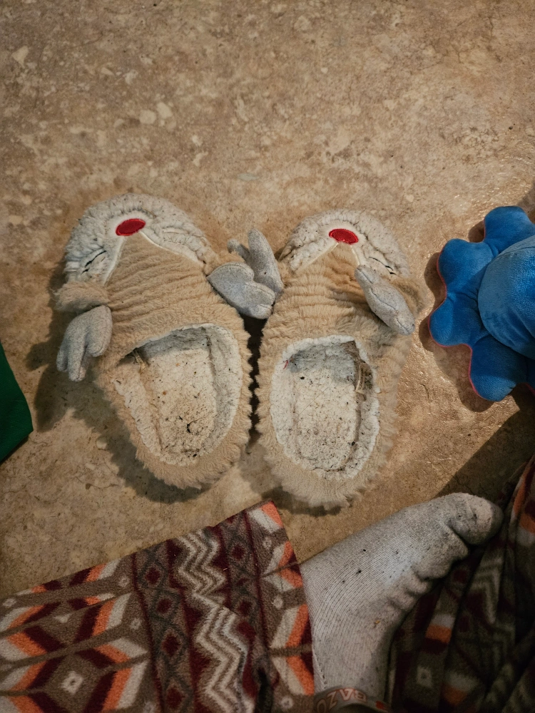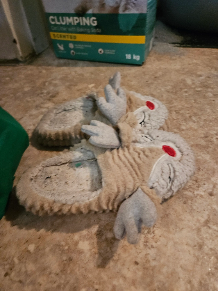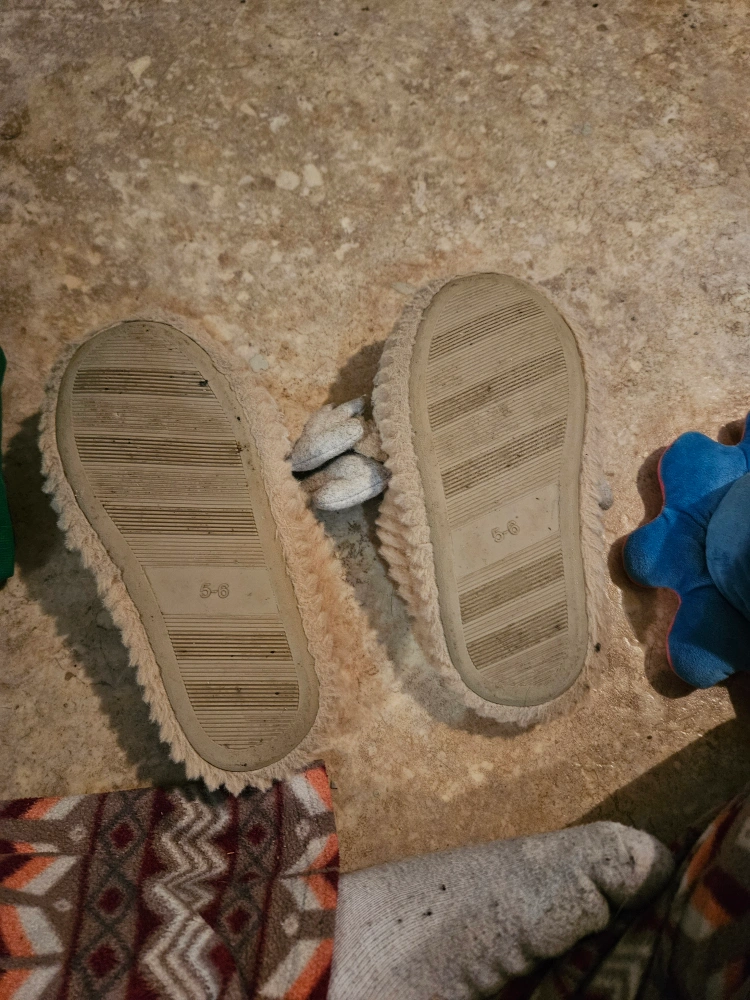 Cute Reindeer slippers in size 5-6! They're super cozy and perfect for lounging around the house. Please note they do show some signs of wear.