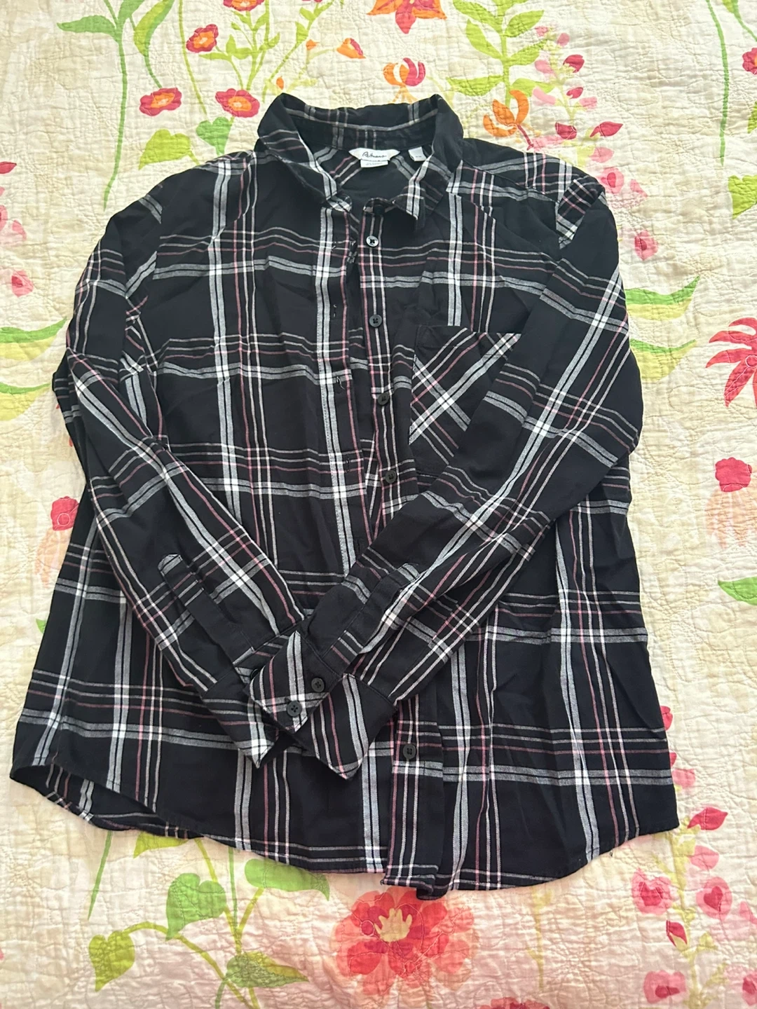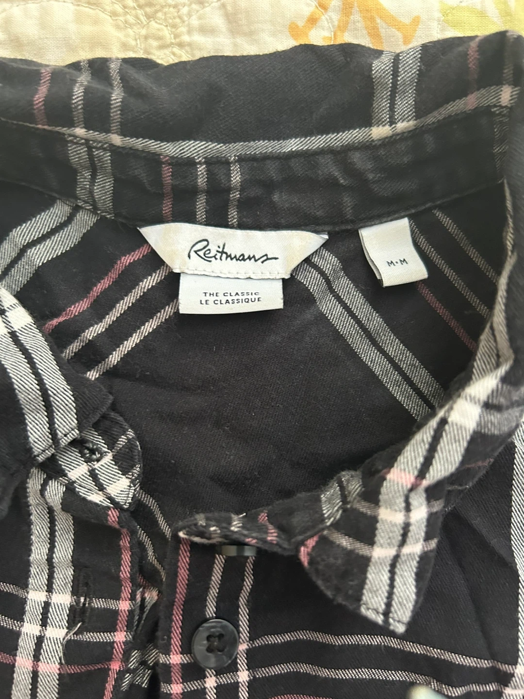 Here's a Reitmans The Classic flannel shirt in size M. It features a classic plaid pattern, perfect for a casual and comfortable look. It's in great condition and ready for a new home!