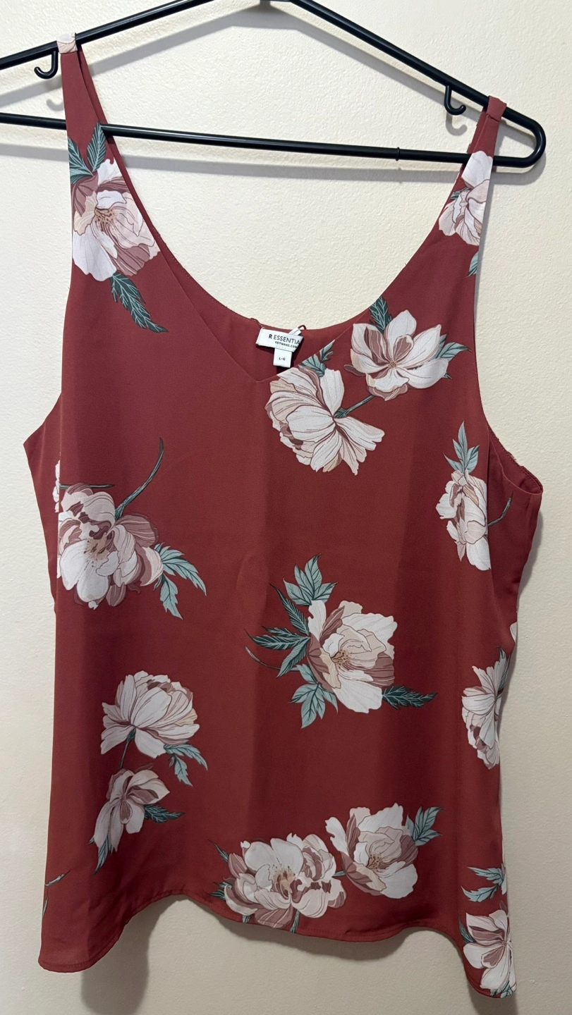 Rust coloured cami with a floral pattern. Size large. Lightweight material. Scoop neck. Barely used.In excellent condition. Made in a soft woven fabric.