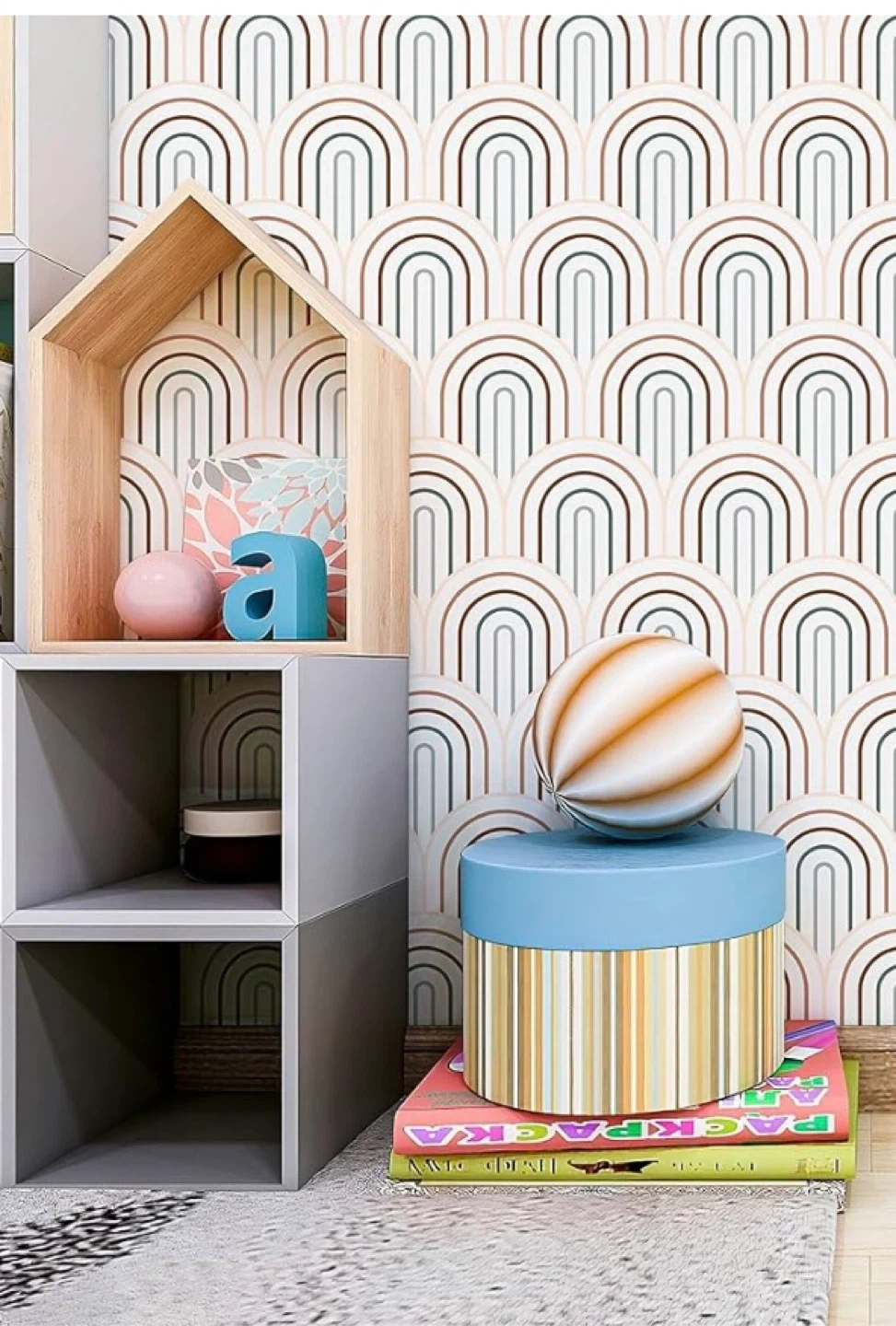 Large Waterproof Modern Geometric peel & stick Wallpaper Large Roll size 15.5” x 197” Each roll $25 (7 rolls available)