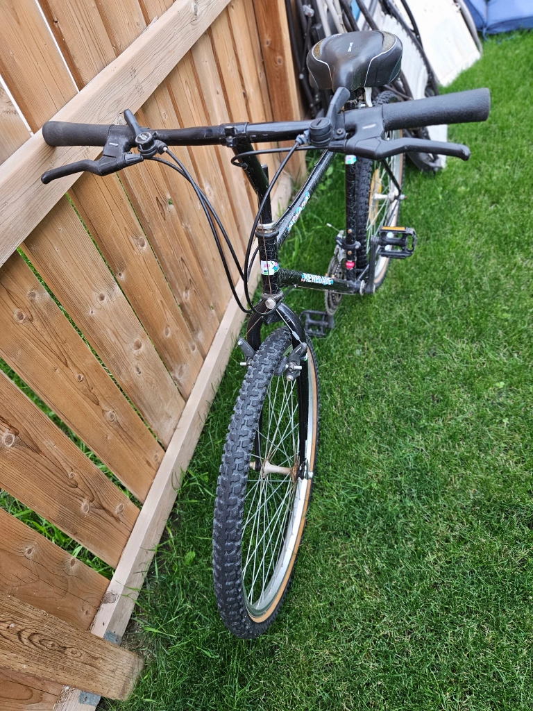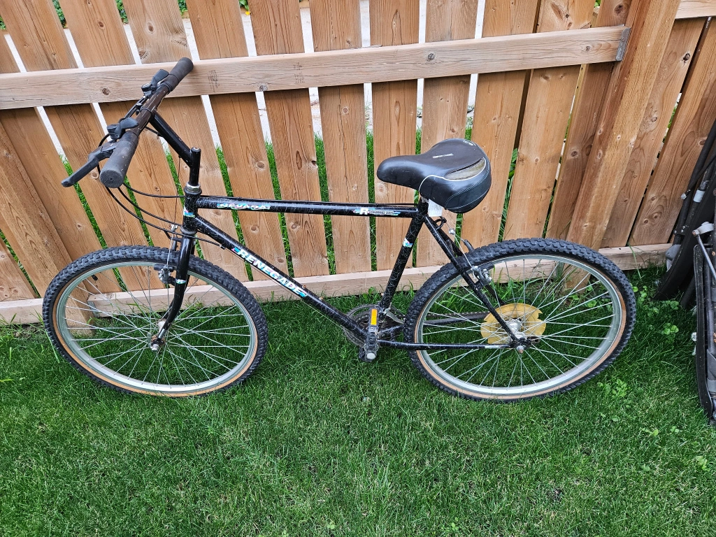 Selling a Renegade mountain bike. It features Shimano SIS shifters and a comfort channel gel cell seat. The frame is made of Hi-Ten steel. this is a great all around bike with high end gears and brakes for an extremely reasonable price