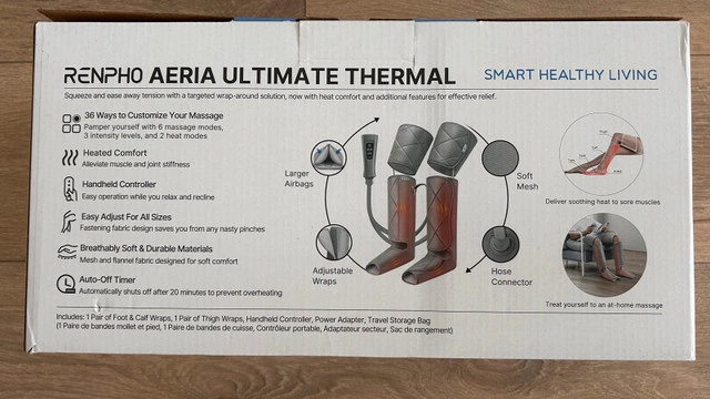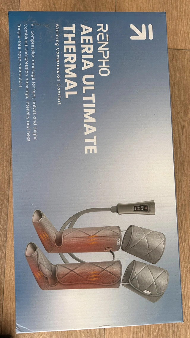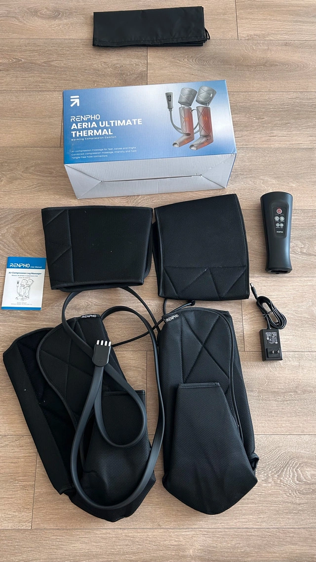 I'm offering a like-new RENPHO Aeria Ultimate Thermal leg massager designed for air compression massage for feet, calves, and thighs with warming compression comfort. It has combined compression massage, intensity, and heat, and is equipped with tangle-free hose connectors. It provides targeted relief and relaxation right in the comfort of your home. Key Features: - Air compression massage for feet, calves, and thighs - Warming compression comfort - Combined compression massage, intensity, and heat - Tangle-free hose connectors If you're seeing this ad, the item is still available.
