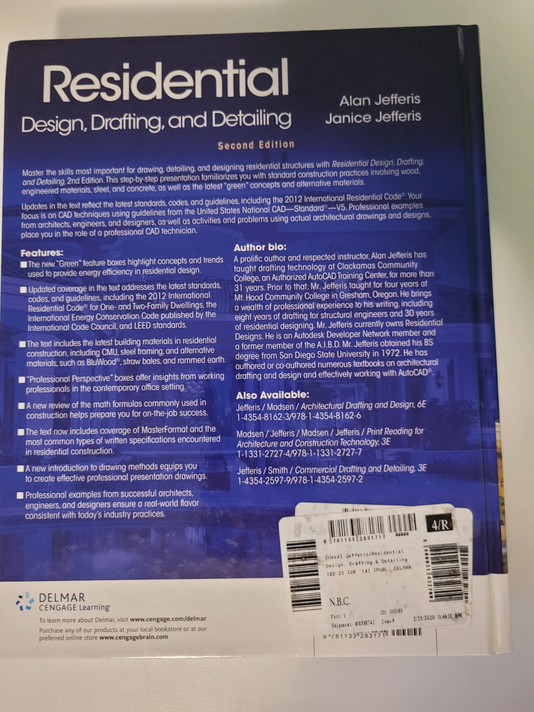 Second edition textbook. Covers design, drafting, and detailing. Authors: Alan Jefferis and Janice Jefferis. Good condition.