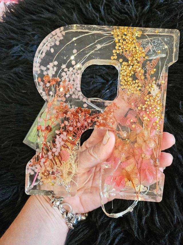 These letter R's are absolutely beautiful. They are 7 " the pink/gold one is a battery operated light up & the teal one does not have lights The Price is $35 for the light up one & $30 for tge teal one For Sale By: Owner
