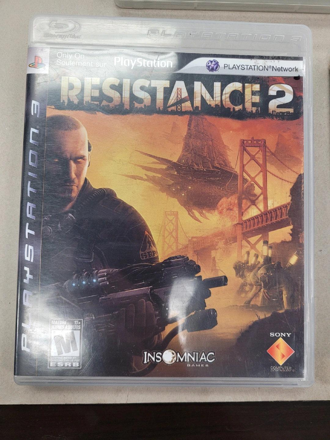 Selling Resistance 2 for the PlayStation 3. Rated M for Mature audiences. Developed by Insomniac Games and published by Sony Computer Entertainment