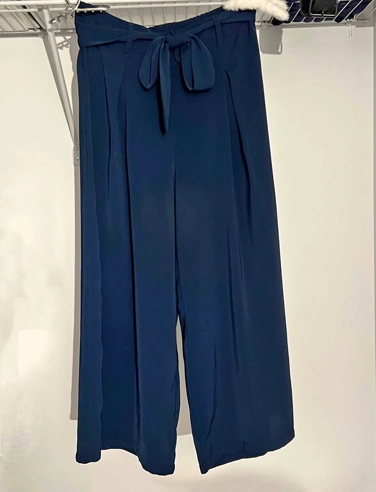 (Retail $78) Navy Blue Wide-Leg Pants with Bow Belt – Size 6/8