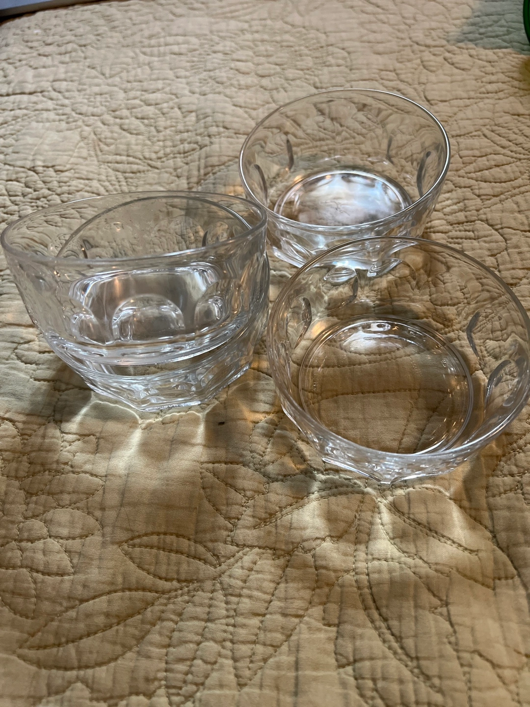 Retro 70s Arcoroc Thumbprint dimple glass dessert bowls Set of 4 Made in France